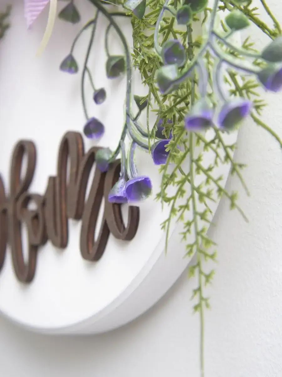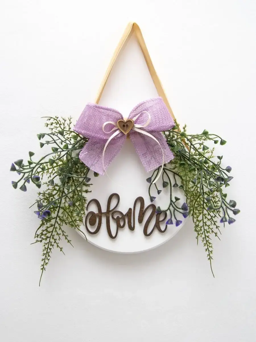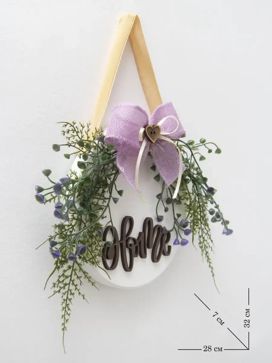Подвесное настенное панно с цветами и объемным декором. Настенный декор изготовлен в ручную из высококачественной березовой фанеры, декорирован цветами и лентами, окрашено акриловой эмалью без запаха. Искусственные растения и милые ленточки придадут весеннего настроения и легкости вашему дому. Украшение на дверь. Размер панно - 30х28х7 см. Диаметр деревянного диска - 20 см. Настенный декор можно дополнить светодиодными нитями. Крепление для стены в комплекте.