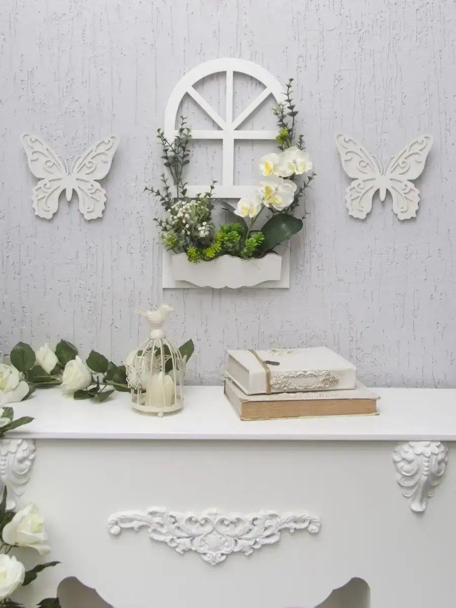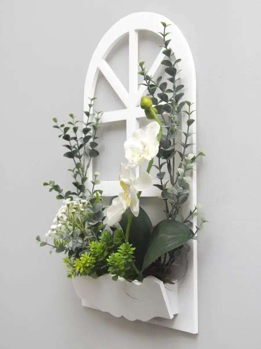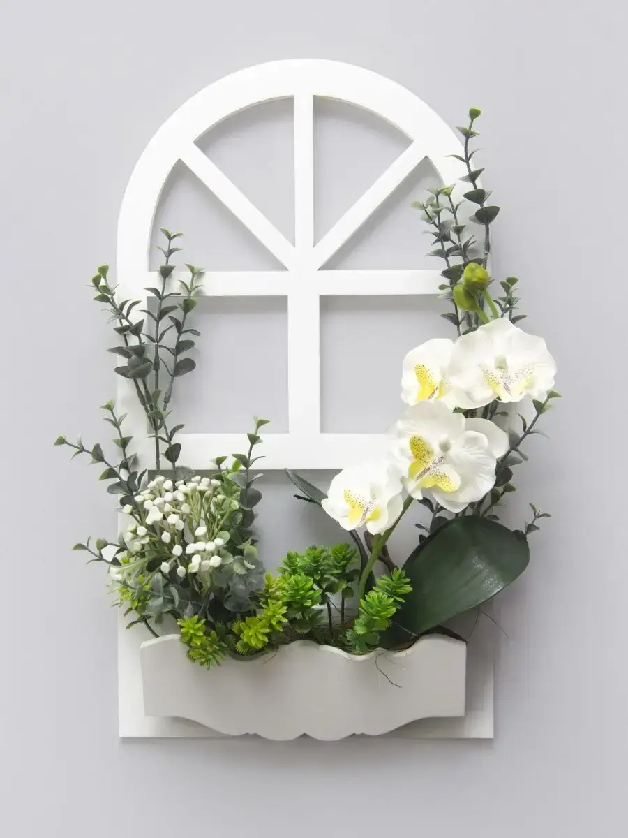 Украшение настенное для интерьера с искусственными интерьерными цветами. Композиции из папоротников, лаванды, ромашек, колокольчиков. Панно декоративное в виде окна с цветами. Цветы надежно закреплены в деревянном кашпо-окно, размер окна 38х21 см. Крепление на зубчатый крепеж , саморез для стены в комплекте. Отличное украшение к зеркалу, в прихожей, ванной или для кухни, где живым цветам недостаточно света. Всегда будут радовать и добавлять уюта в дом. По желанию самостоятельно можно дополнить светодиодными нитями (светодиодной гирляндой). Уход : обдуть феном, протирать влажной тканью , обработать антистатиком.