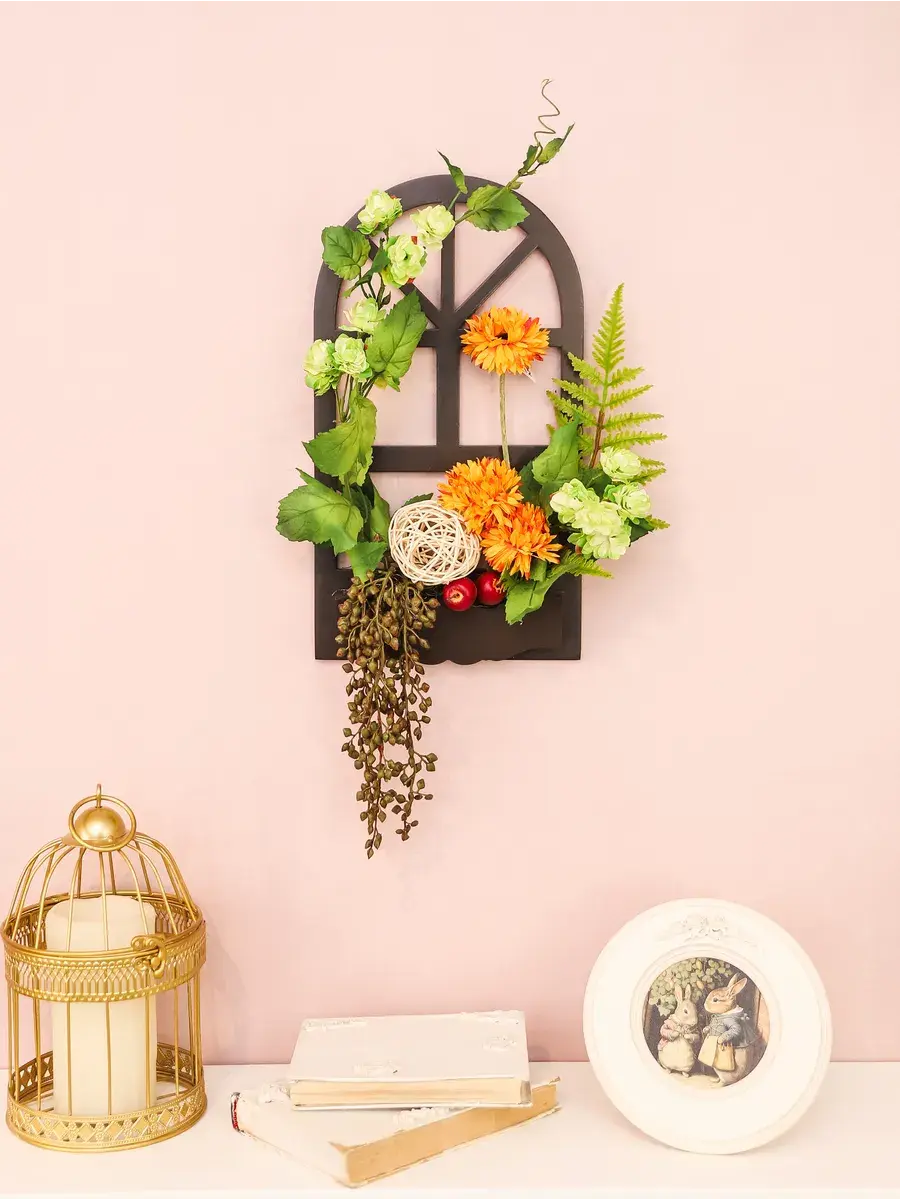 Украшение настенное для интерьера с искусственными интерьерными цветами. Композиции из папоротников, лаванды, ромашек, колокольчиков. Панно декоративное в виде окна с цветами. Цветы надежно закреплены в деревянном кашпо-окно, размер окна 40*18 см. Крепление на зубчатый крепеж , саморез для стены в комплекте. Отличное украшение к зеркалу, в прихожей, ванной или для кухни, где живым цветам недостаточно света. Всегда будут радовать и добавлять уюта в дом. По желанию самостоятельно можно дополнить светодиодными нитями (светодиодной гирляндой). Уход : обдуть феном, протирать влажной тканью , обработать антистатиком.