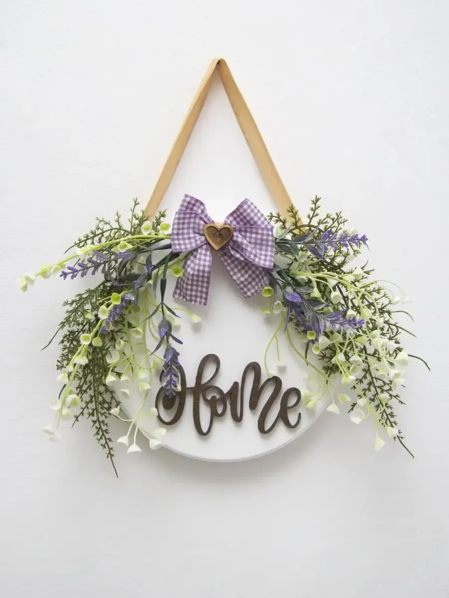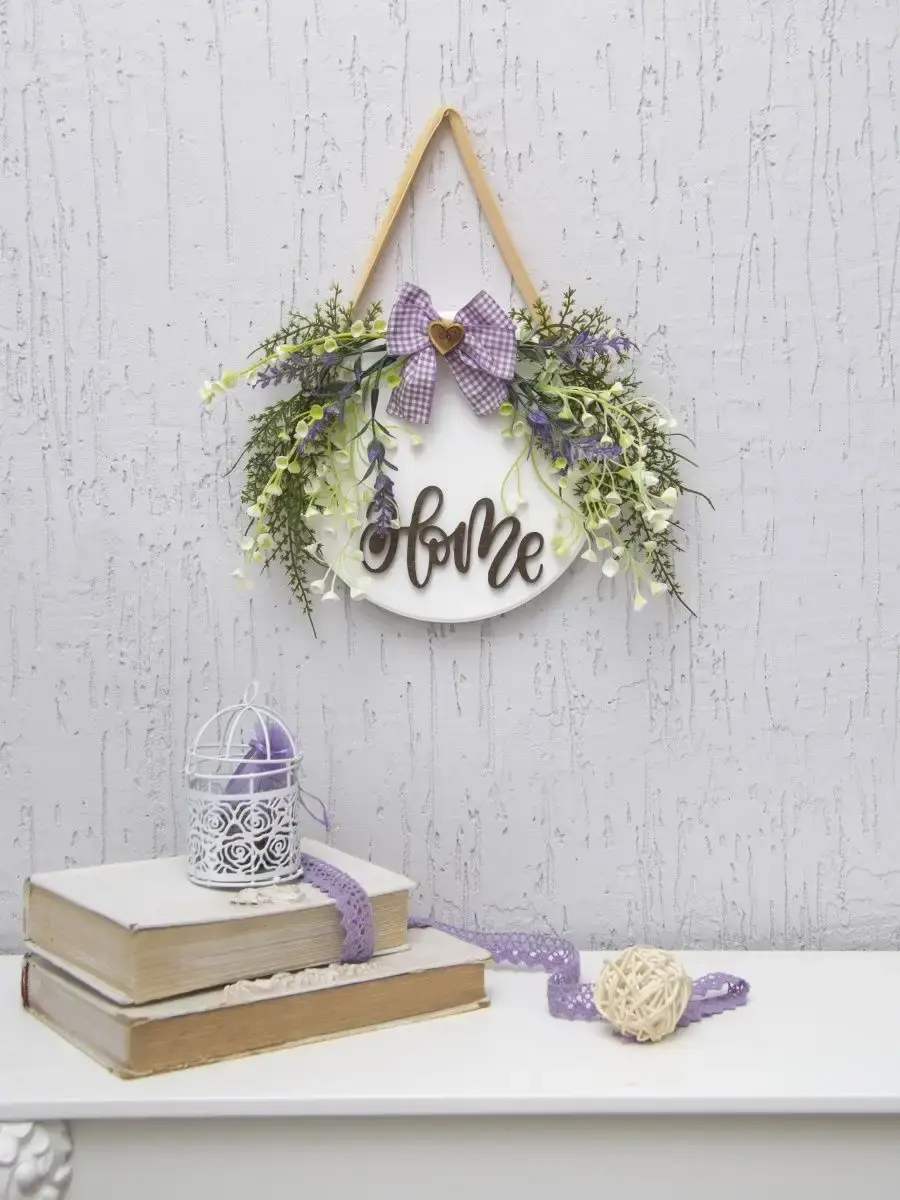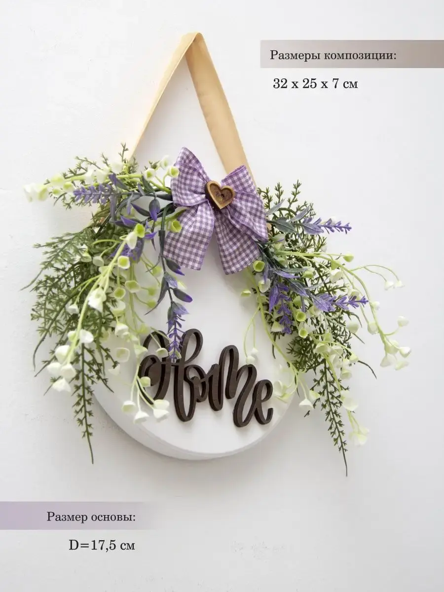 Подвесное настенное панно с цветами и объемным декором. Настенный декор изготовлен в ручную из высококачественной березовой фанеры, декорирован цветами и лентами, окрашено акриловой эмалью без запаха. Искусственные растения и милые ленточки придадут весеннего настроения и легкости вашему дому. Украшение на дверь. Размер панно - 30х28х7 см. Диаметр деревянного диска - 20 см. Настенный декор можно дополнить светодиодными нитями. Крепление для стены в комплекте.