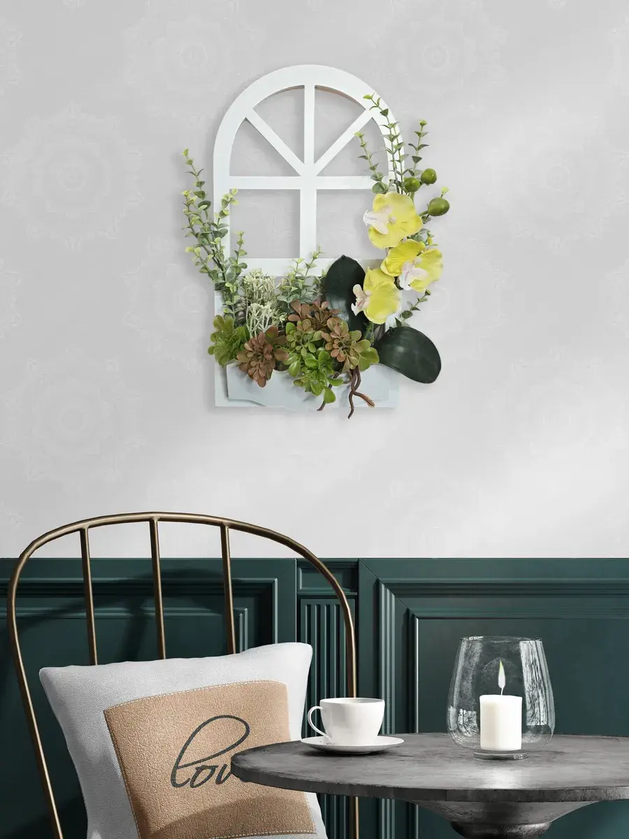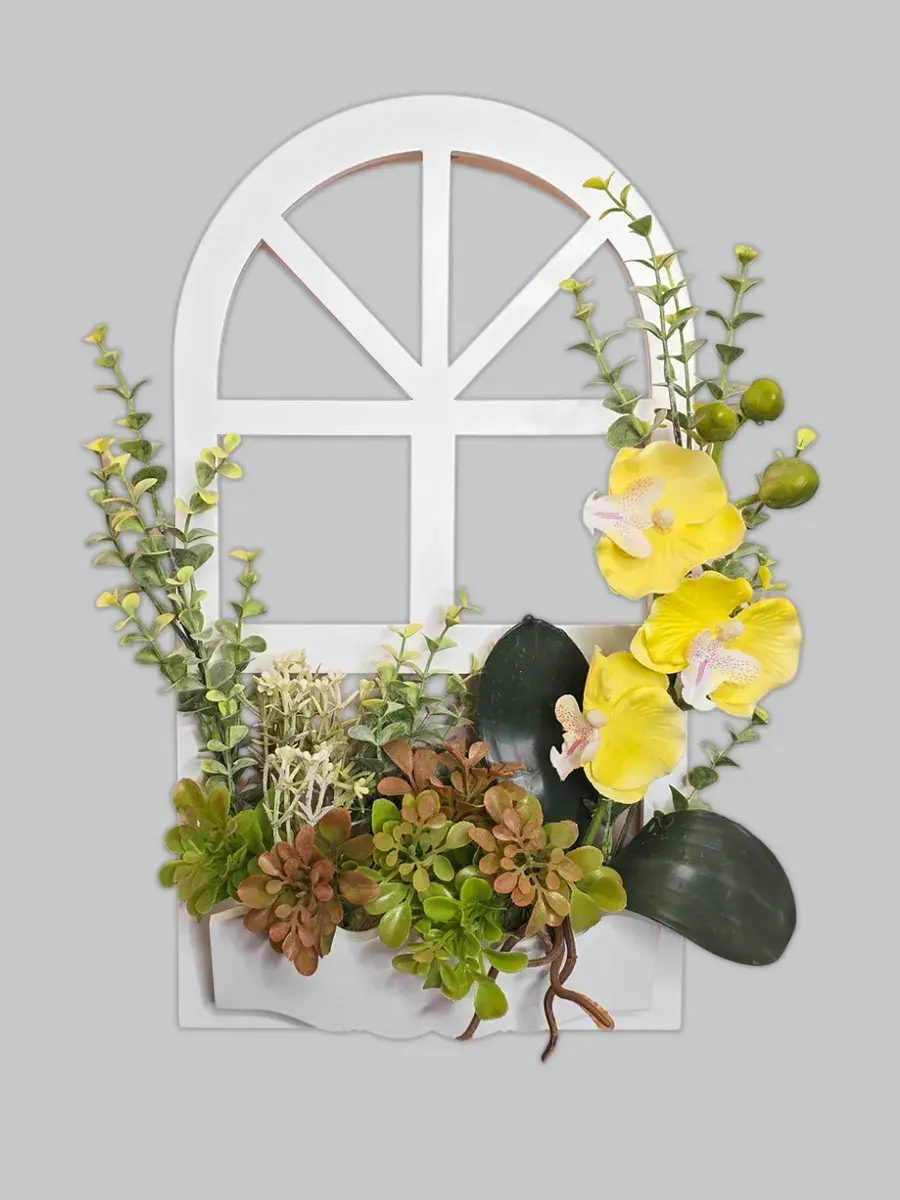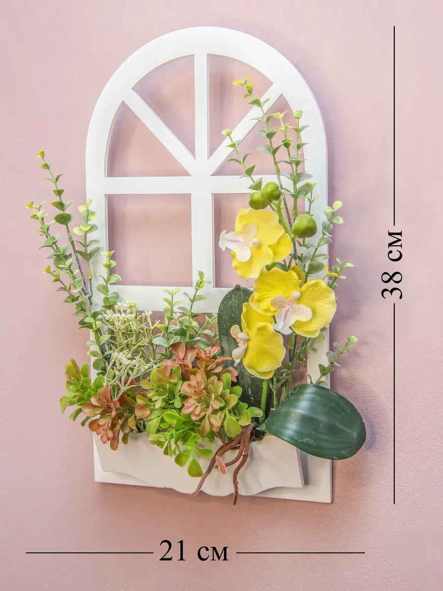 Украшение настенное для интерьера с искусственными интерьерными цветами. Композиции из папоротников, лаванды, ромашек, колокольчиков. Панно декоративное в виде окна с цветами. Цветы надежно закреплены в деревянном кашпо-окно, размер окна 38х21 см. Крепление на зубчатый крепеж , саморез для стены в комплекте. Отличное украшение к зеркалу, в прихожей, ванной или для кухни, где живым цветам недостаточно света. Всегда будут радовать и добавлять уюта в дом. По желанию самостоятельно можно дополнить светодиодными нитями (светодиодной гирляндой). Уход : обдуть феном, протирать влажной тканью , обработать антистатиком.