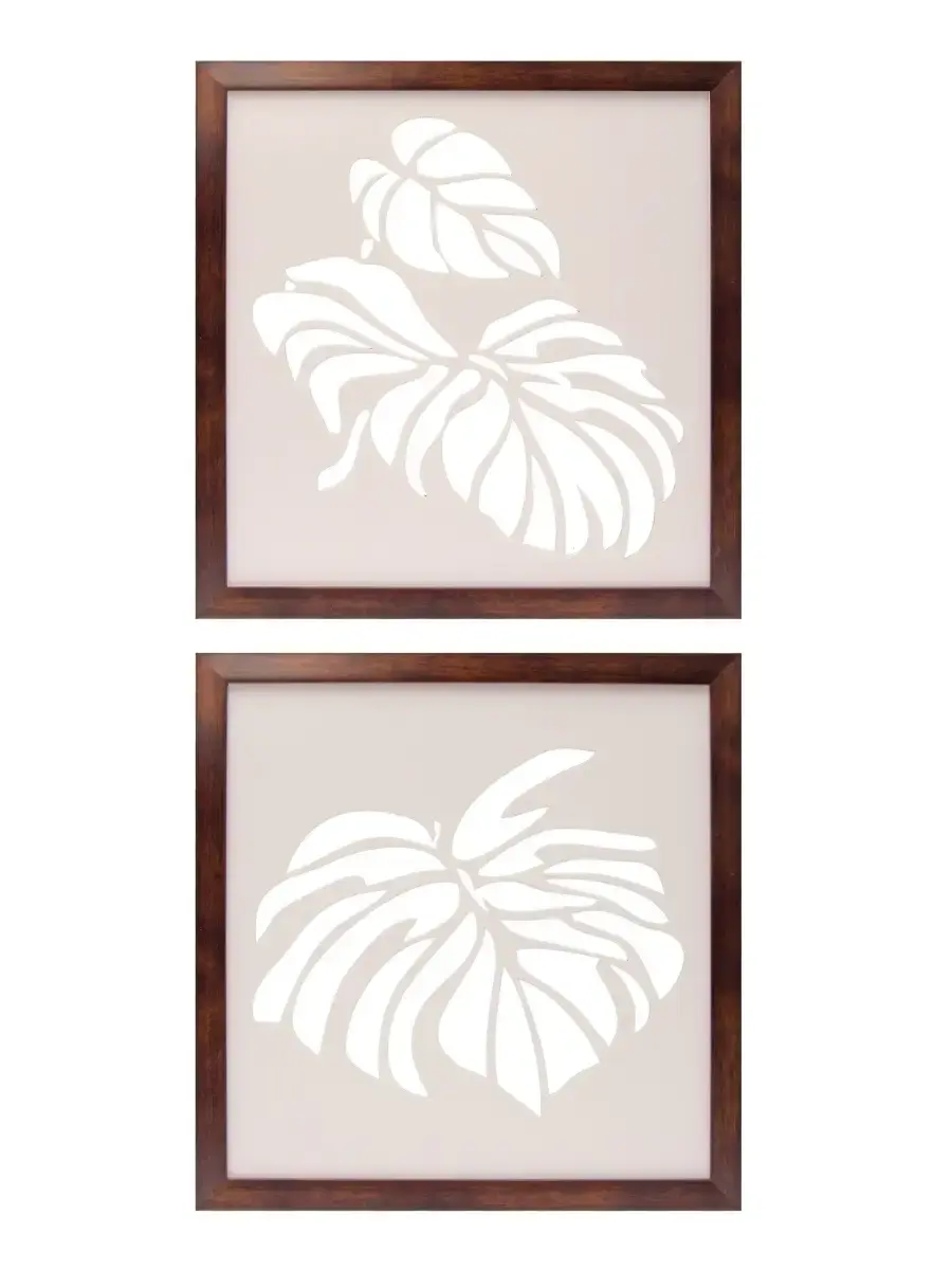 Настенные панно "Монстеры". Декор на стену для комнаты в современном стиле. Деревянные резные листья монстеры оформлены в лаконичную багетную раму, покрашены акриловой эмалью на водной основе. Декор для интерьера дома и дачи. Декорация на стену спальни, прихожей, украшение для кухни и ванной комнаты. Деревянные панно легкие и изящные, преобразят интерьер комнат. Размер одного панно 30х30 см. С обратной стороны зубчатый крепеж, крепление для стены в комплекте.