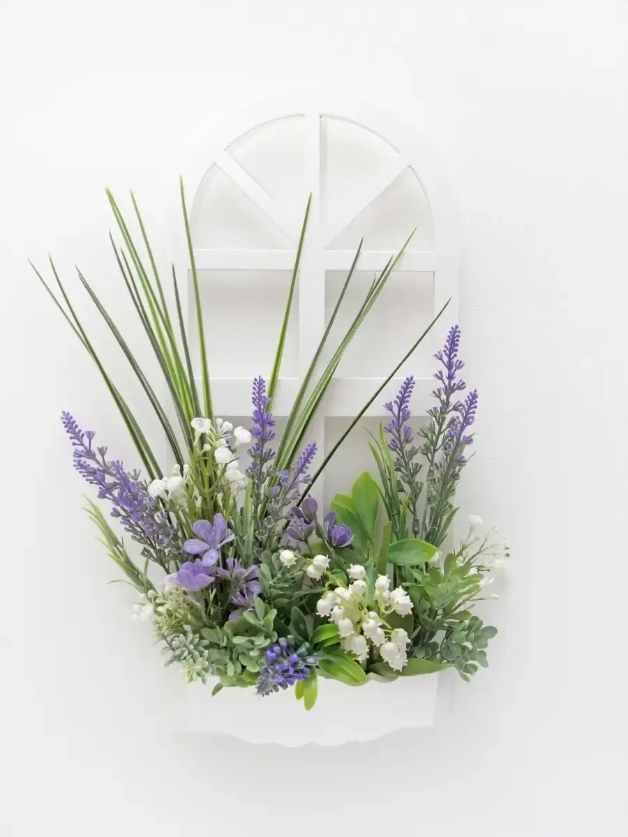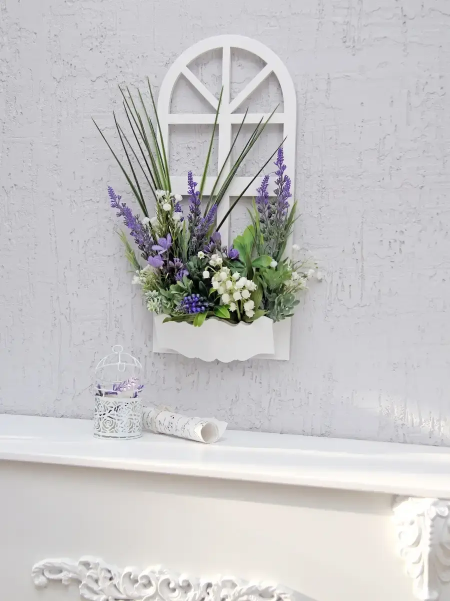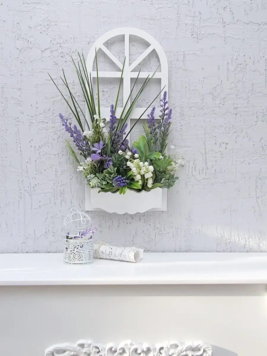 Украшение настенное для интерьера с искусственными интерьерными цветами . Композиция настенная в деревянном кашпо-окно с цветами, ВНИМАНИЕ! Размеры фальш-окна композиций отличаются (18х40см или 38х21см) Размер конкретной модели указан в карусели фотографий. Крепление на зубчатый крепеж , саморез для стены в комплекте. Отличное украшение к зеркалу, в прихожей, ванной или для кухни, где живым цветам недостаточно света. Всегда будут радовать и добавлять уюта в дом. Прекрасный подарок для дома, дачи или салона красоты. По желанию самостоятельно можно дополнить светодиодными нитями (светодиодной гирляндой). Уход : обдуть феном, протирать влажной тканью , обработать антистатиком..