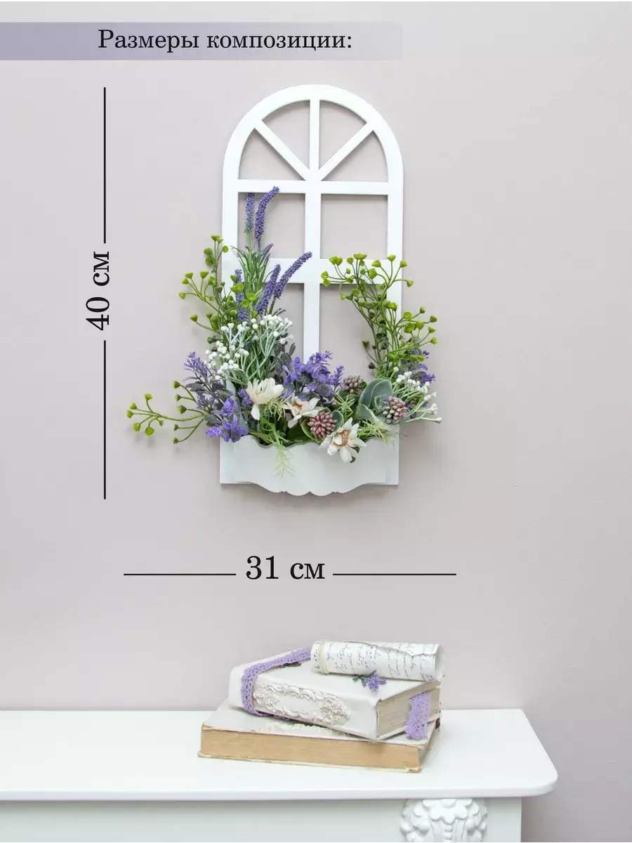 Украшение настенное для интерьера с искусственными интерьерными цветами . Композиция настенная в деревянном кашпо-окно с цветами, размер фальш-окна 18*40см. Крепление на зубчатый крепеж , саморез для стены в комплекте. Отличное панно на стену к зеркалу, в прихожей, ванной или для кухни, где живым цветам недостаточно света. Декоративные панно всегда будут радовать и добавлять уюта в доме. Прекрасный подарок для дома, дачи или салона красоты. По желанию самостоятельно можно дополнить светодиодными нитями (светодиодной гирляндой). Уход : обдуть феном, протирать влажной тканью , обработать антистатиком. Крепление для стены в комплекте.