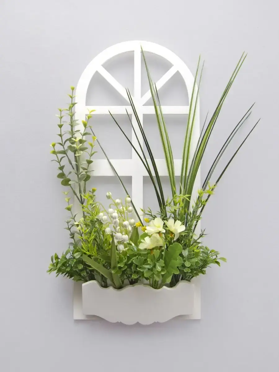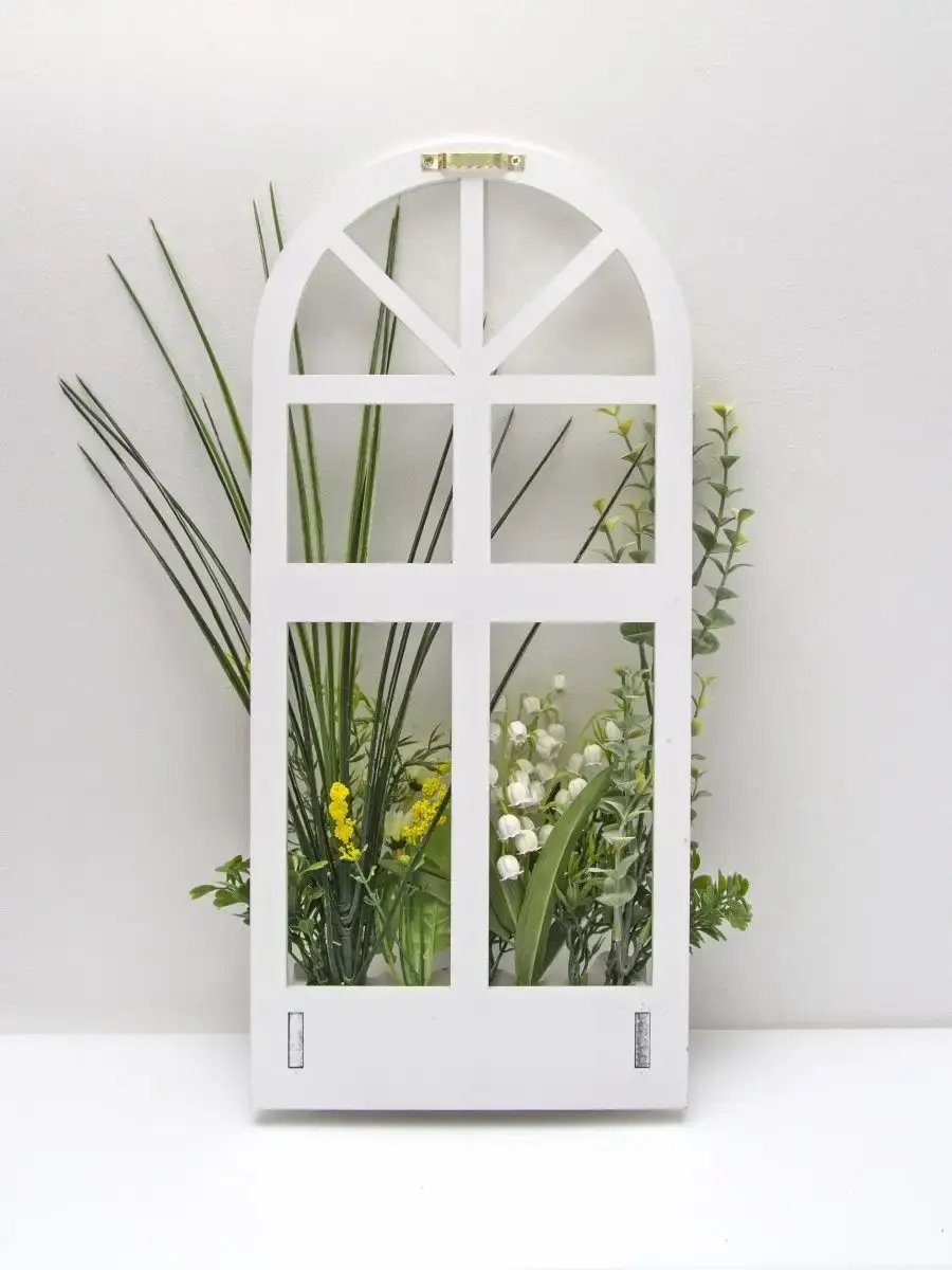 Украшение настенное для интерьера с искусственными интерьерными цветами . Композиция настенная в деревянном кашпо-окно с цветами, размер фальш-окна 18*40см. Крепление на зубчатый крепеж , саморез для стены в комплекте. Отличное панно на стену к зеркалу, в прихожей, ванной или для кухни, где живым цветам недостаточно света. Декоративные панно всегда будут радовать и добавлять уюта в доме. Прекрасный подарок для дома, дачи или салона красоты. По желанию самостоятельно можно дополнить светодиодными нитями (светодиодной гирляндой). Уход : обдуть феном, протирать влажной тканью , обработать антистатиком. Крепление для стены в комплекте.