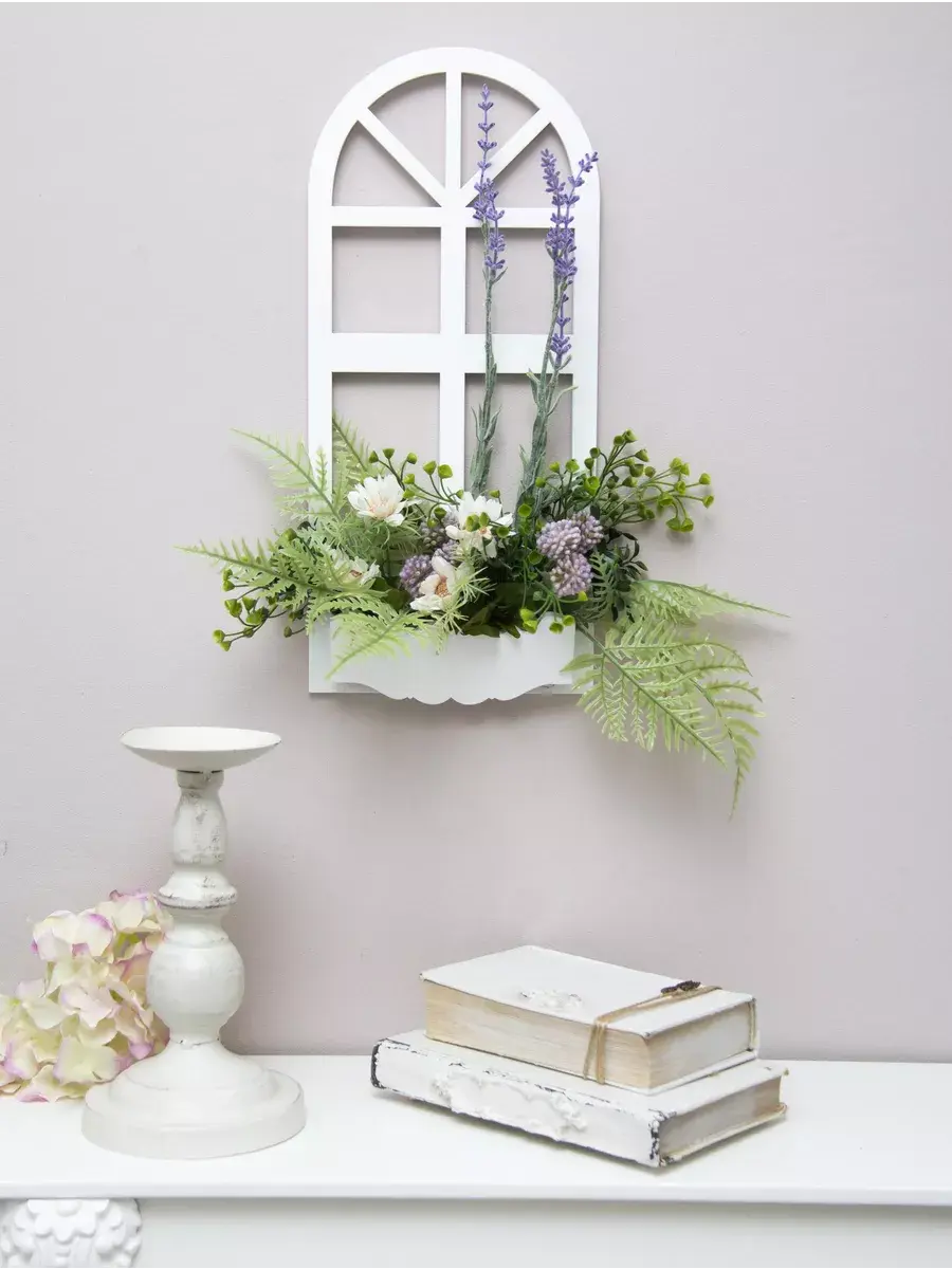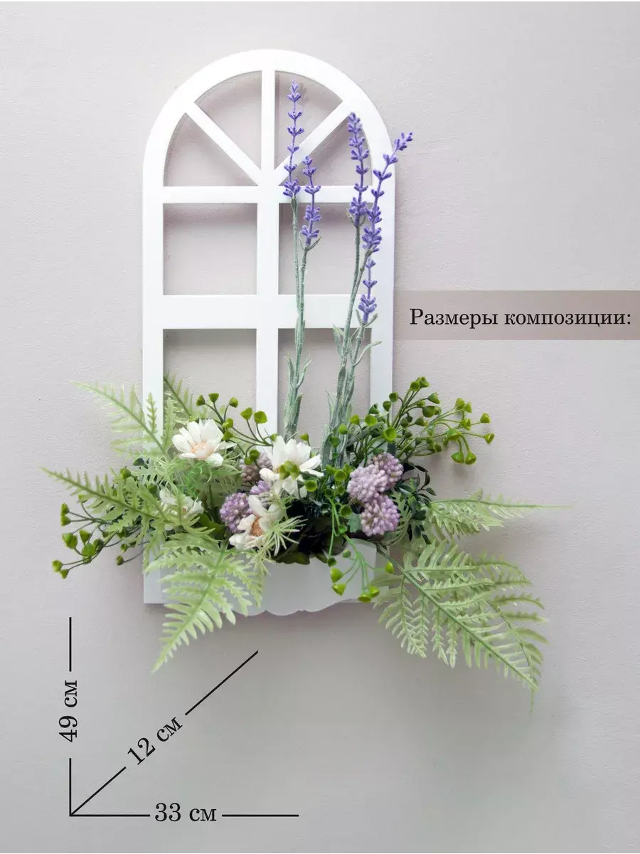 Украшение настенное для интерьера с искусственными интерьерными цветами . Композиция настенная в деревянном кашпо-окно с цветами, размер фальш-окна 18*40см. Крепление на зубчатый крепеж , саморез для стены в комплекте. Отличное панно на стену к зеркалу, в прихожей, ванной или для кухни, где живым цветам недостаточно света. Декоративные панно всегда будут радовать и добавлять уюта в доме. Прекрасный подарок для дома, дачи или салона красоты. По желанию самостоятельно можно дополнить светодиодными нитями (светодиодной гирляндой). Уход : обдуть феном, протирать влажной тканью , обработать антистатиком. Крепление для стены в комплекте.