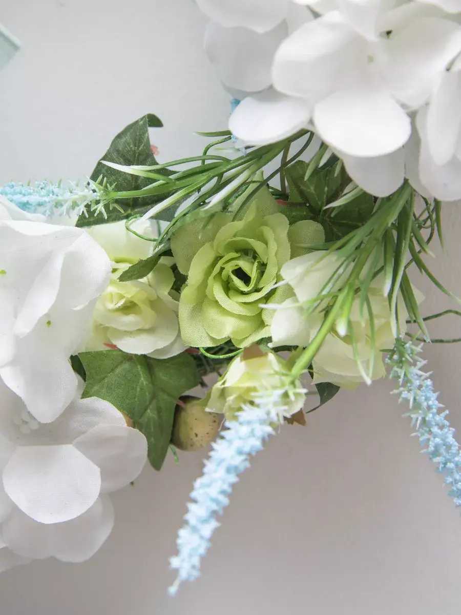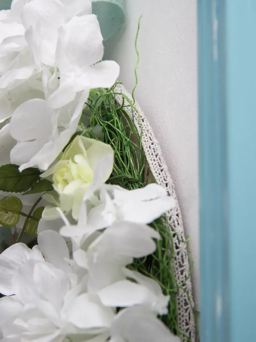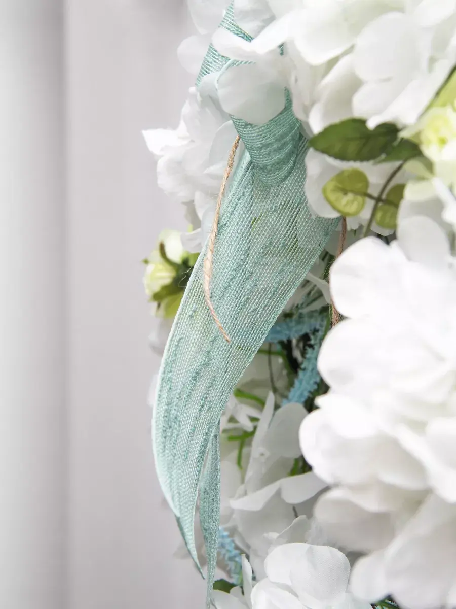 Авторская настенная композиция из интерьерных цветов в багетной раме. Рама из широкого багета (полиуретан) под состаренное дерево обрамляет венок из гортензий с широким бантом. Настенное панно для весеннего настроения, пасхальной композиции или украшения стен в кафе, ресторане. Размер рамы 47*57 см. В комплекте шуруп с дюбелем и зубчатый крепеж на раме. Отличное украшение к винтажному зеркалу, коллекции картин с цветами или в прихожей, где живым цветам недостаточно света. Панно долго будет радовать и добавлять уюта в дом.