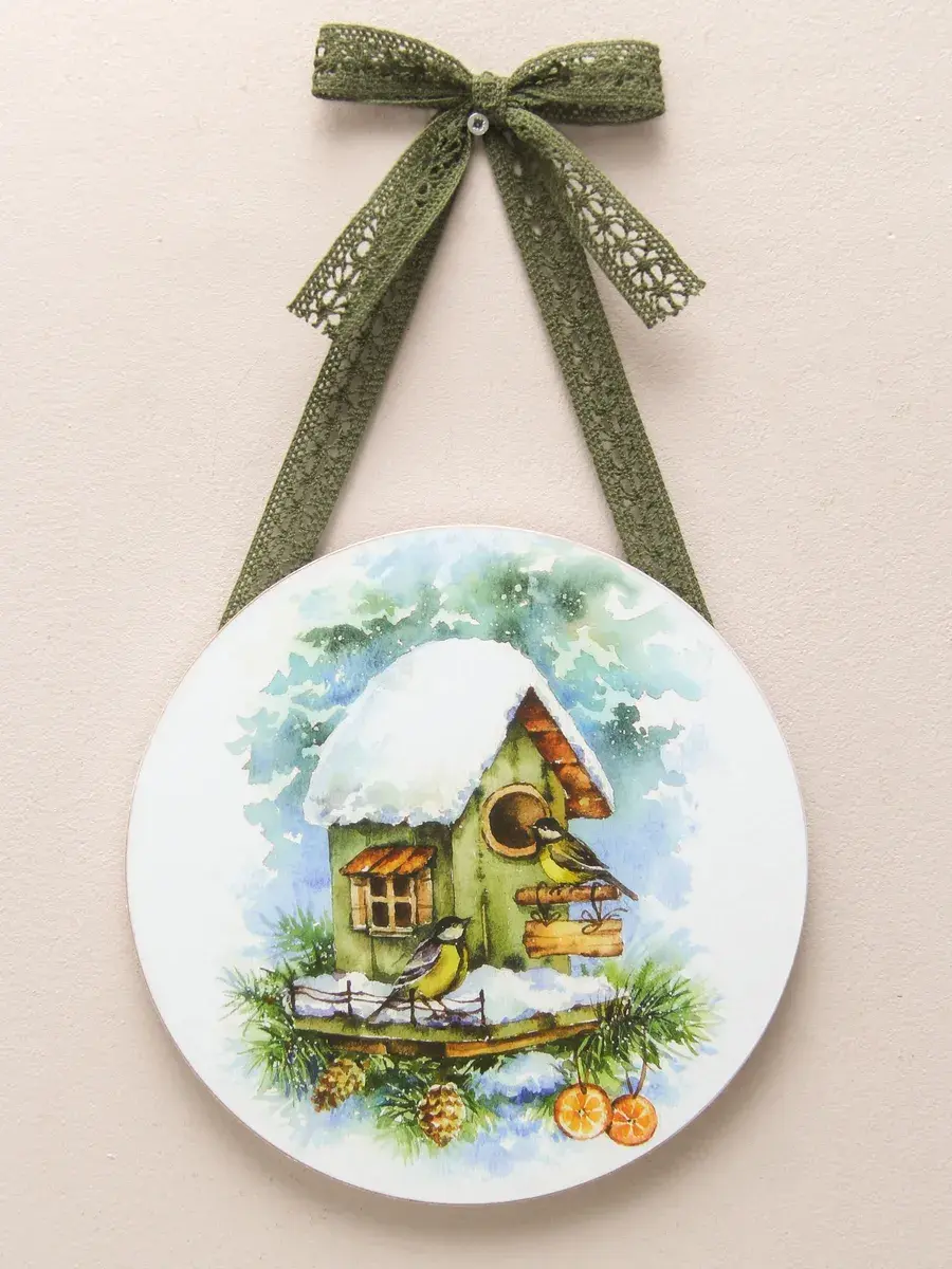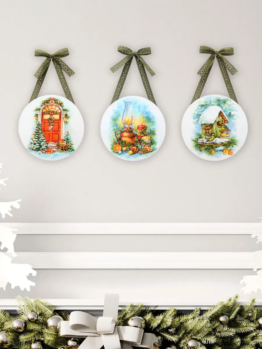 Небольшое настенное панно в рождественском стиле подарит вашему дому уюта и тепла, создаст праздничное настроение, добавит предвкушение новогодних хлопот и ожидание чуда. Нежное кружево, как будто связанное бабушкой, придает нашим панно домашности и уютности. Панно станет прекрасным подарком для родных и близких. Отлично впишется в интерьер кухни, спальни, прихожей, гостиной. Изготовлено из МДФ 10 мм, печать на бумаге, лиминиция для защиты изображения. Диаметр панно 18 см
