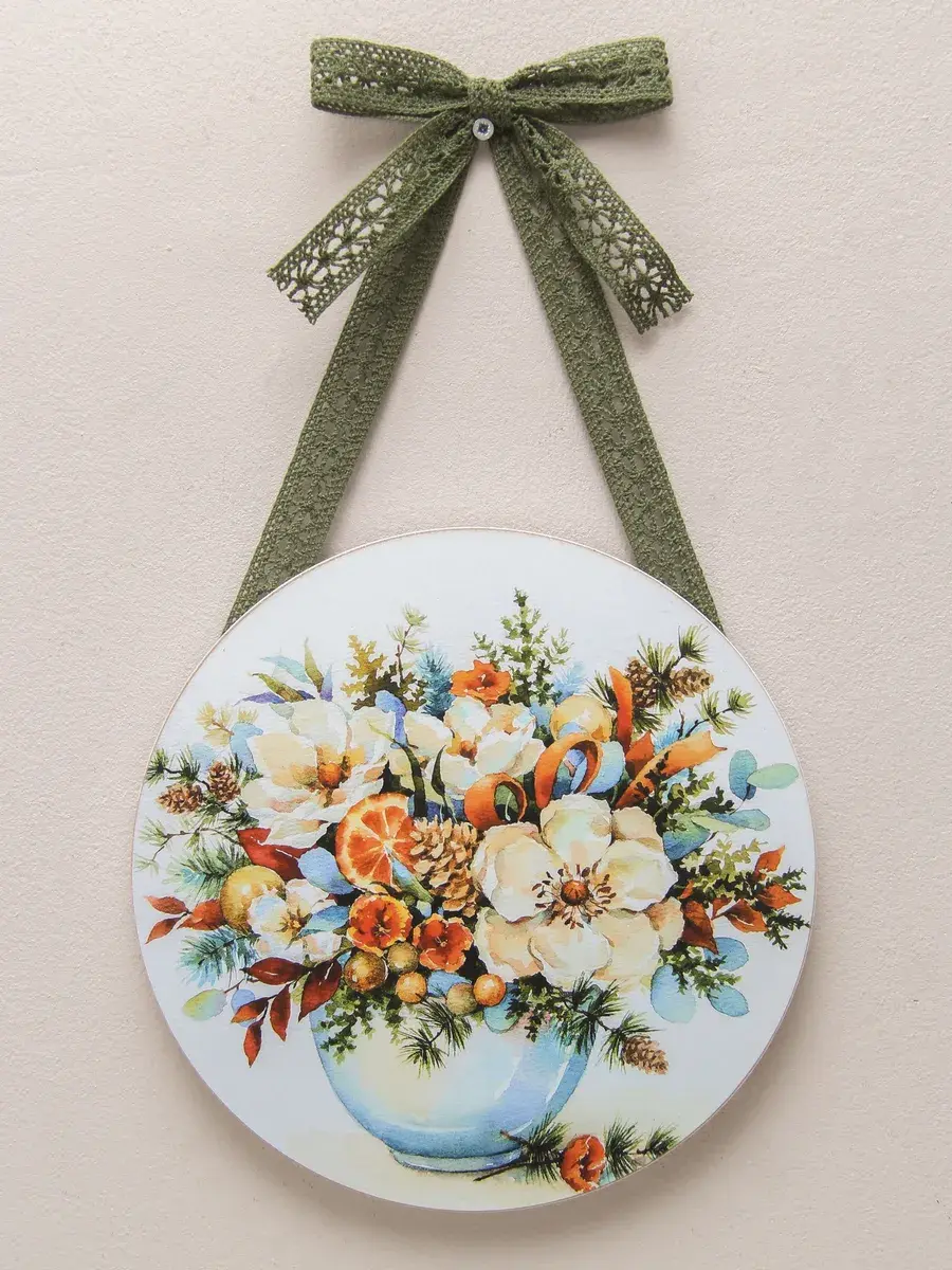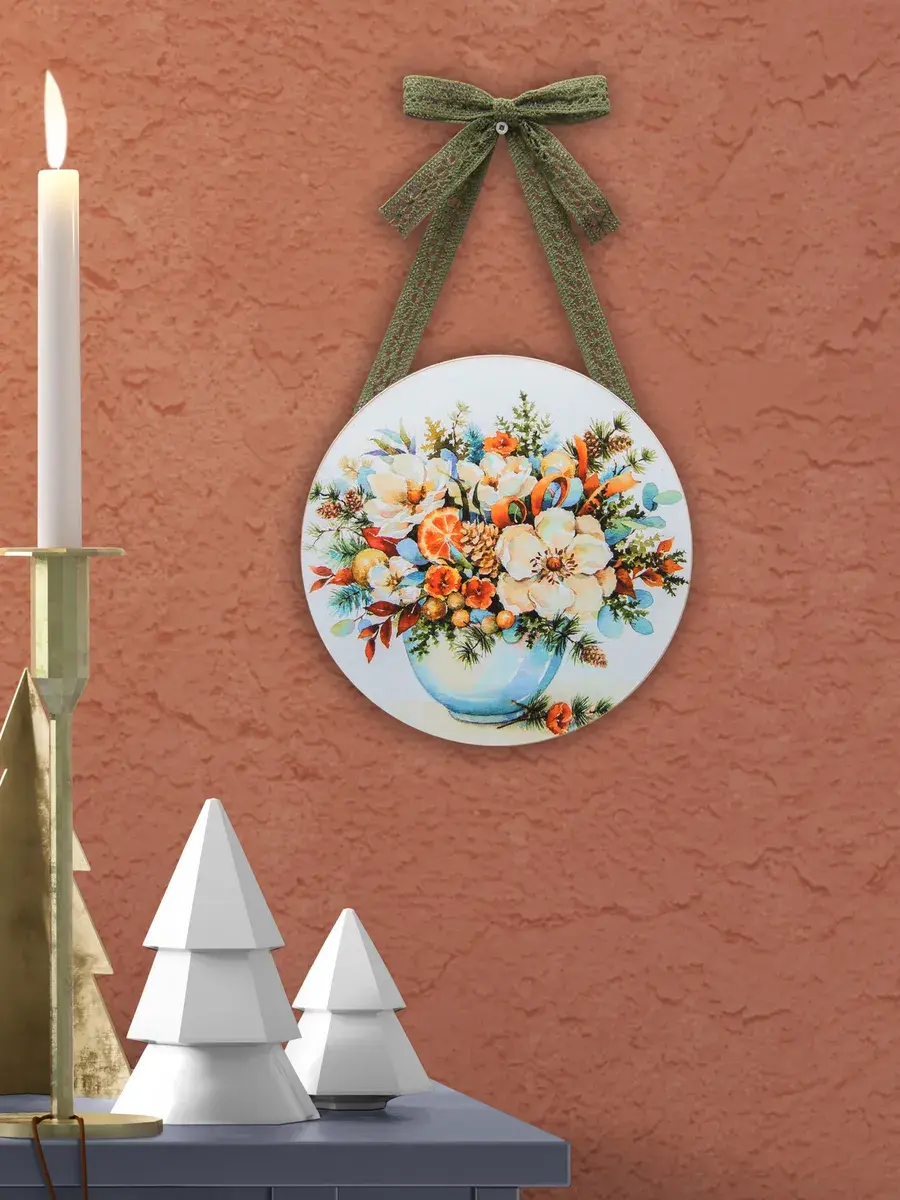 Небольшое настенное панно в рождественском стиле подарит вашему дому уюта и тепла, создаст праздничное настроение, добавит предвкушение новогодних хлопот и ожидание чуда. Нежное кружево, как будто связанное бабушкой, придает нашим панно домашности и уютности. Панно станет прекрасным подарком для родных и близких. Отлично впишется в интерьер кухни, спальни, прихожей, гостиной. Изготовлено из МДФ 10 мм, печать на бумаге, лиминиция для защиты изображения. Диаметр панно 18 см