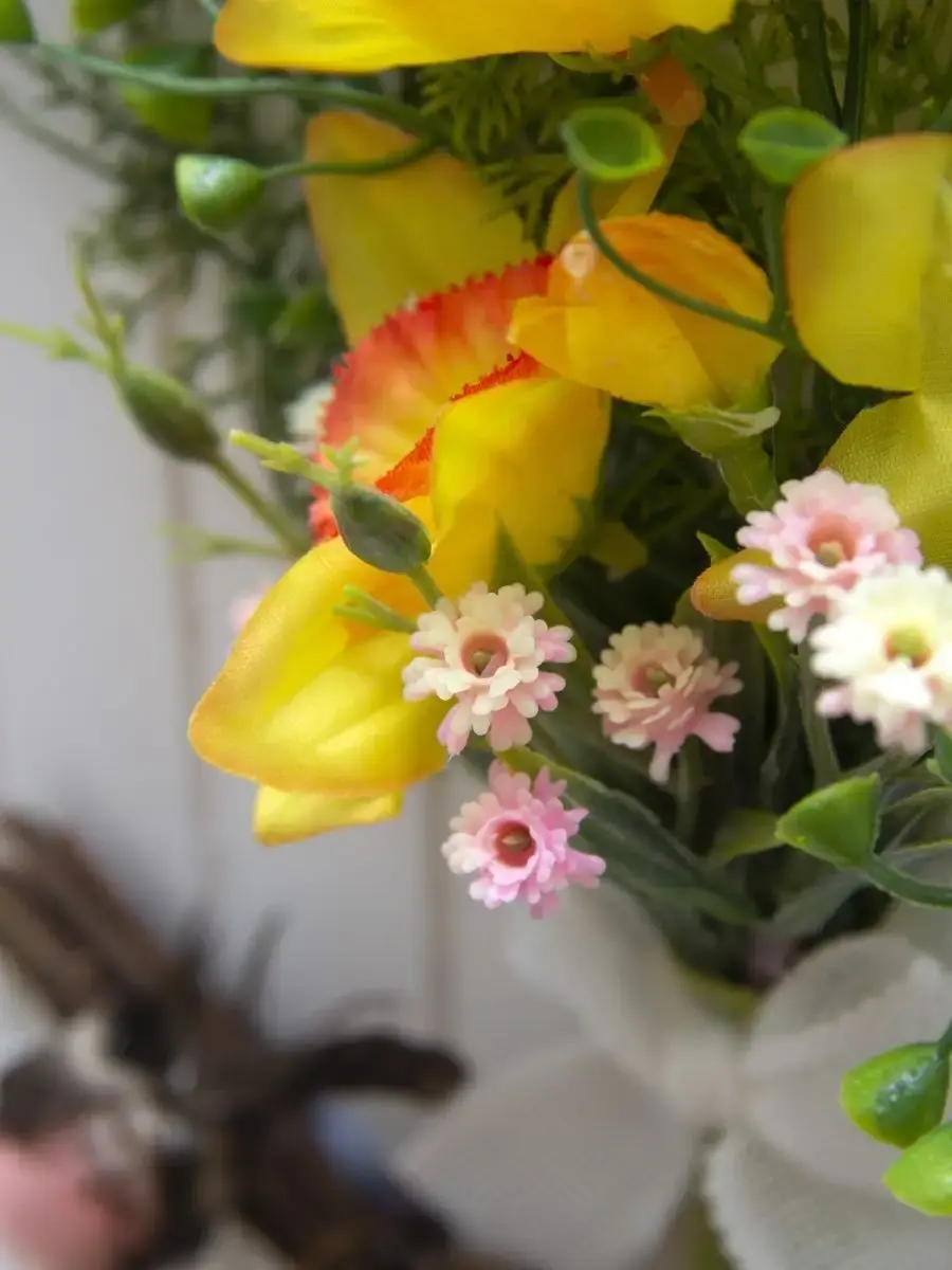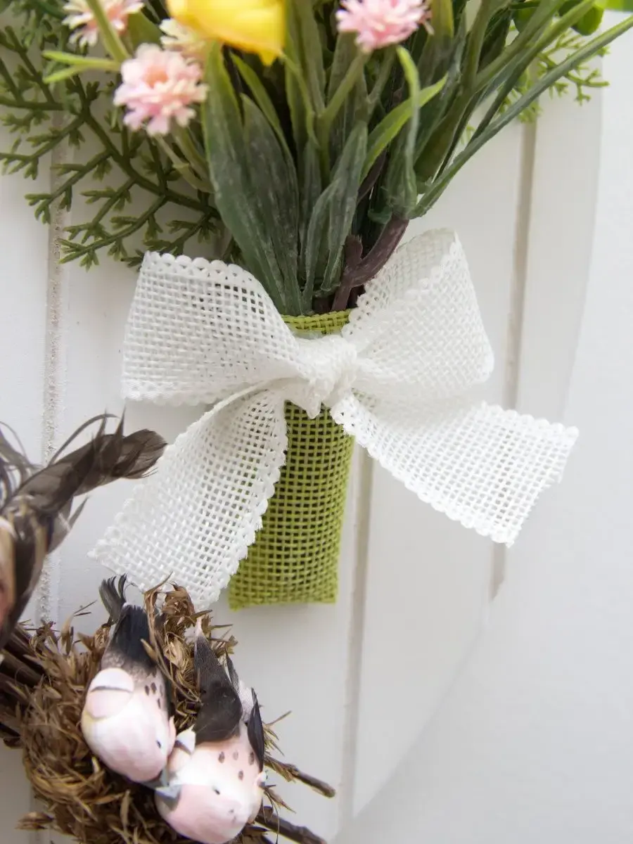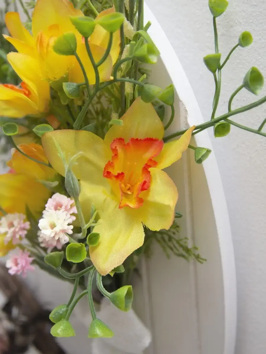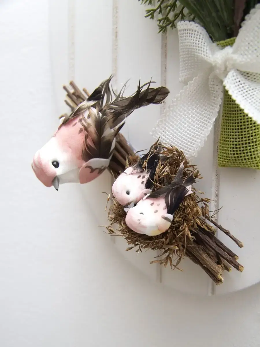 Небольшое декоративное подвесное панно с искусственными цветами и декоративными птичками. Придаст весеннего настроения любому интерьеру. Станет прекрасным дополнением к зеркалу или фотографиям.Размер основы 28,5*18,5 см. Размер композиции 36*28 см.