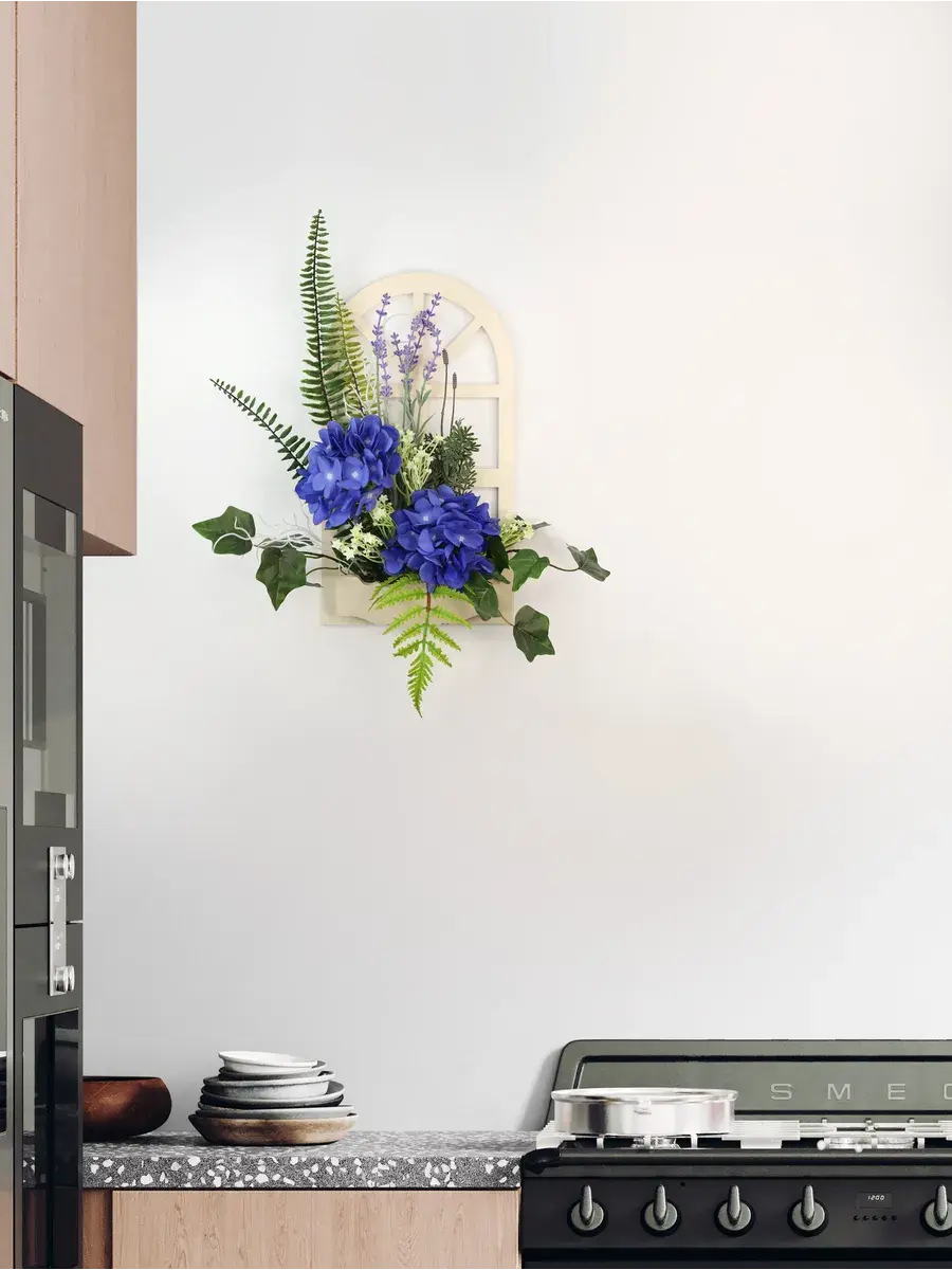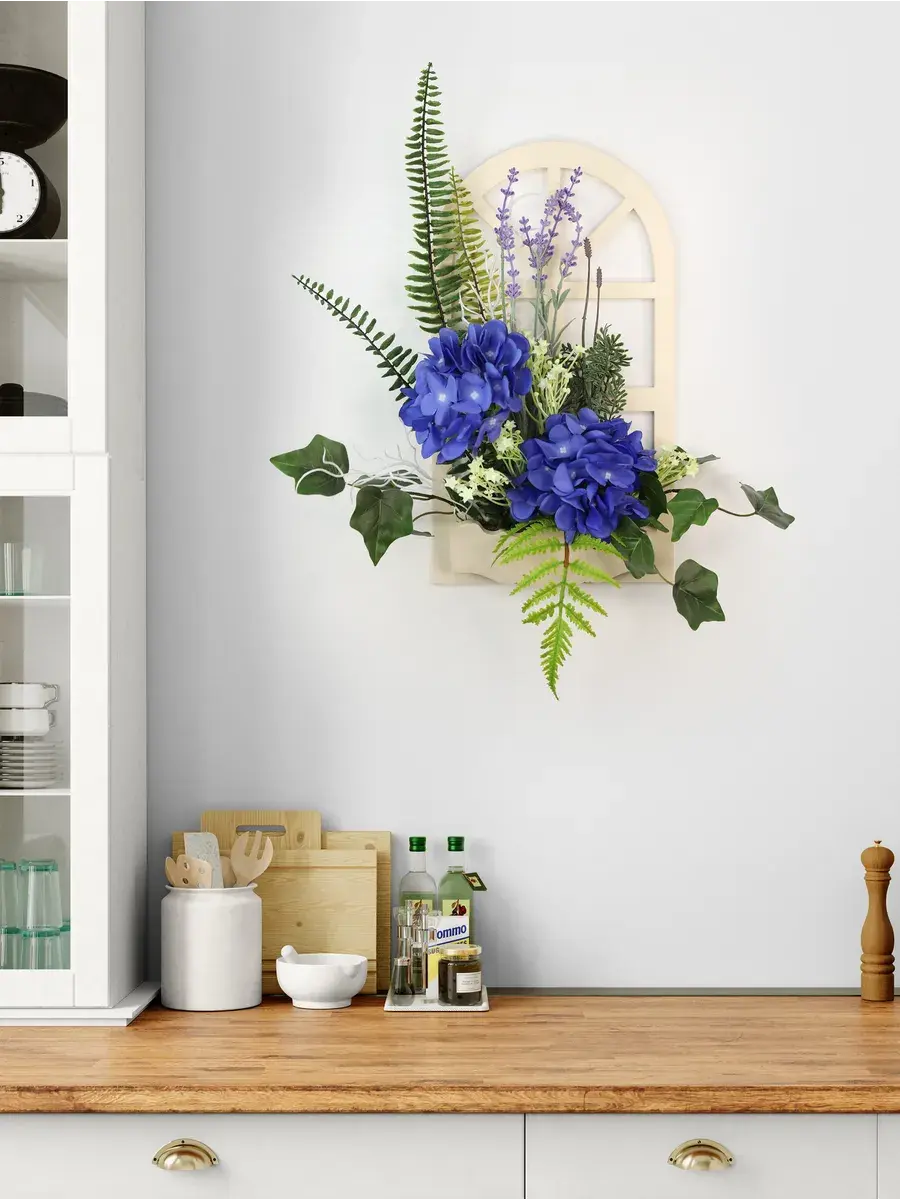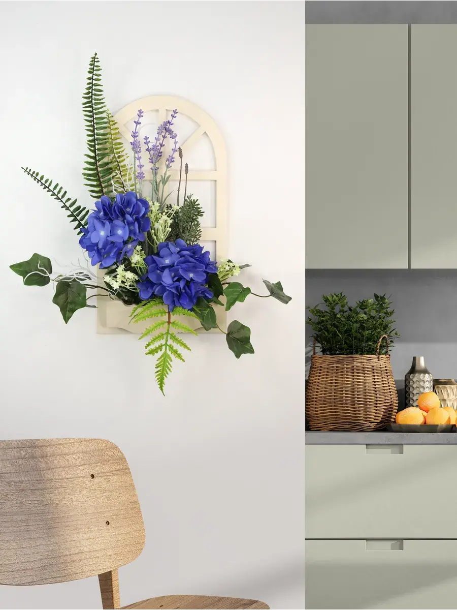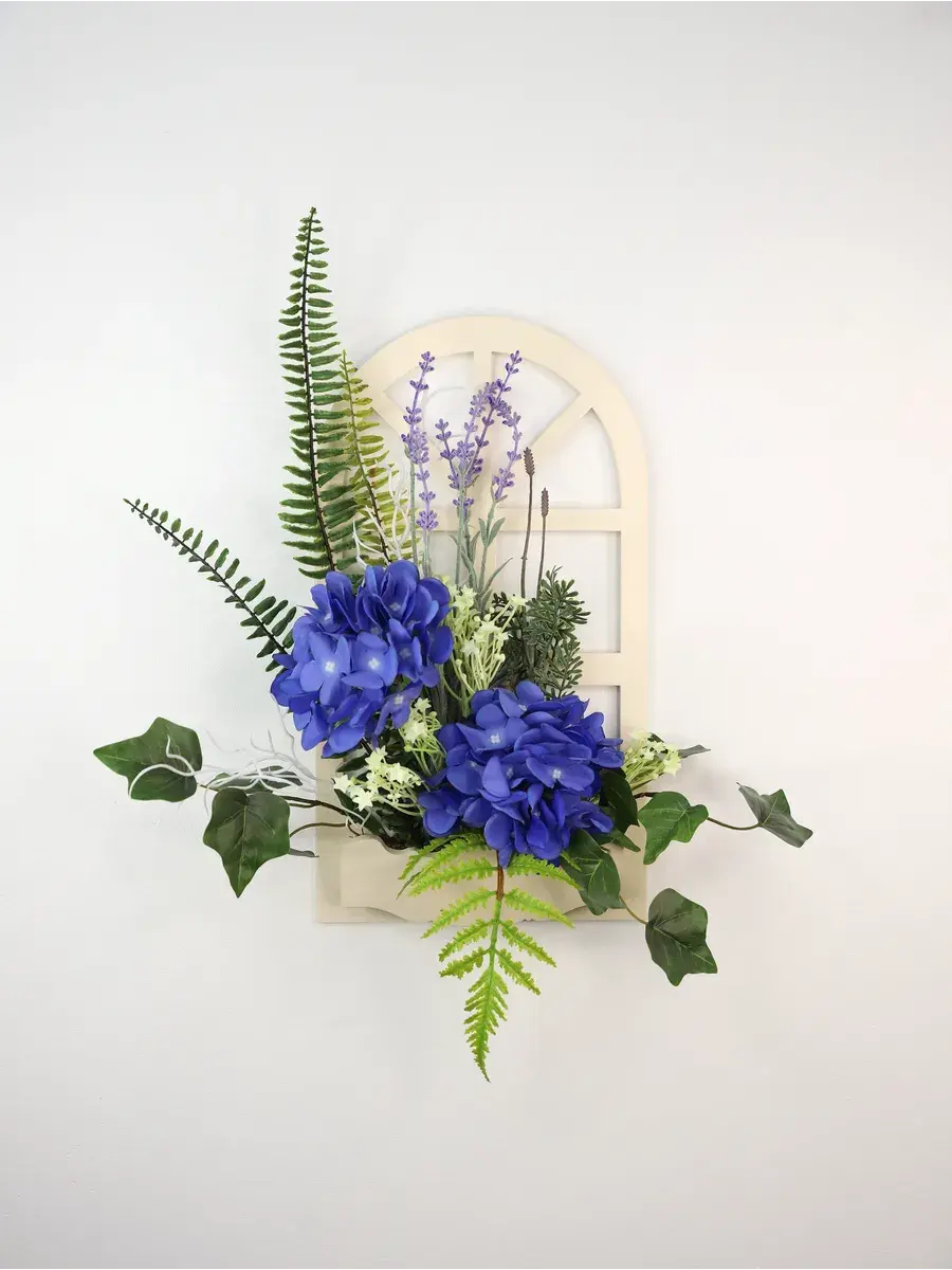 Украшение настенное для интерьера с искусственными интерьерными цветами. Композиции из папоротников, лаванды, ромашек, колокольчиков. Панно декоративное в виде окна с цветами. Цветы надежно закреплены в деревянном кашпо-окно, размер окна 38х21 см. Крепление на зубчатый крепеж , саморез для стены в комплекте. Отличное украшение к зеркалу, в прихожей, ванной или для кухни, где живым цветам недостаточно света. Всегда будут радовать и добавлять уюта в дом. По желанию самостоятельно можно дополнить светодиодными нитями (светодиодной гирляндой). Уход: обдуть феном, протирать влажной тканью , обработать антистатиком.