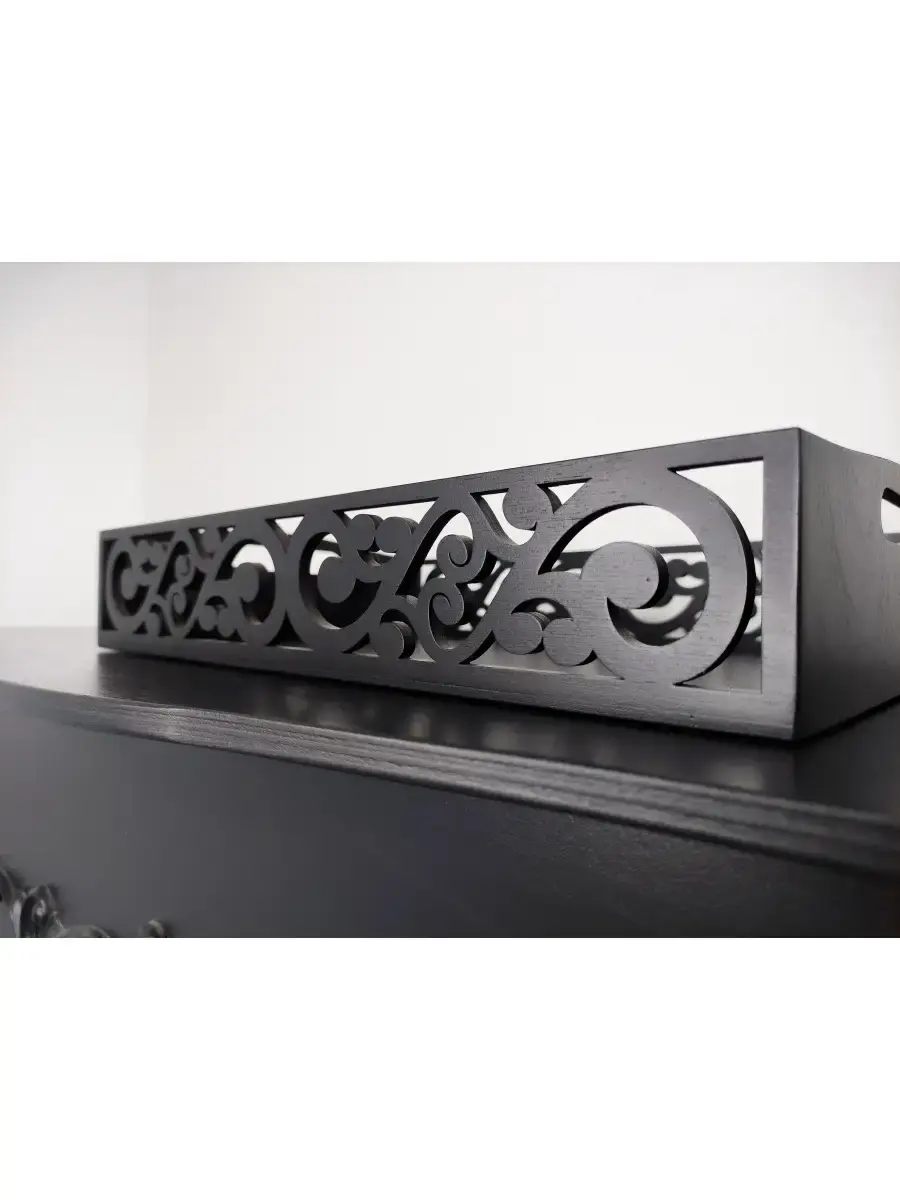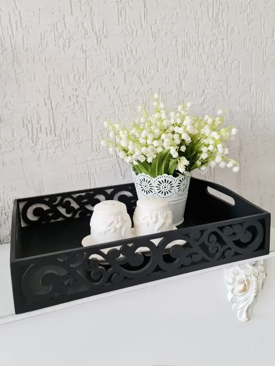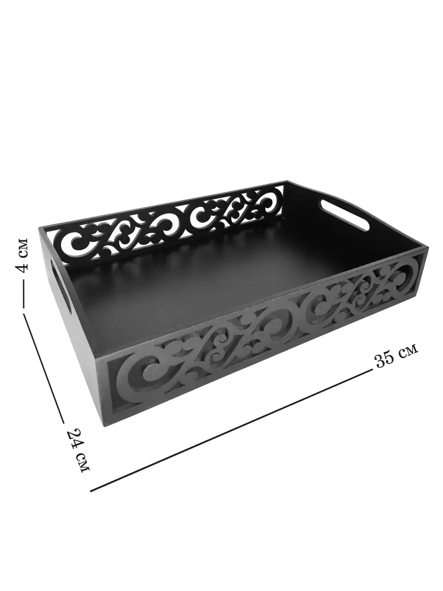 Деревянный резной поднос выполнен из высококачественного материала, окрашен акриловой эмалью без запаха. Размер подноса 35х24х4 см.