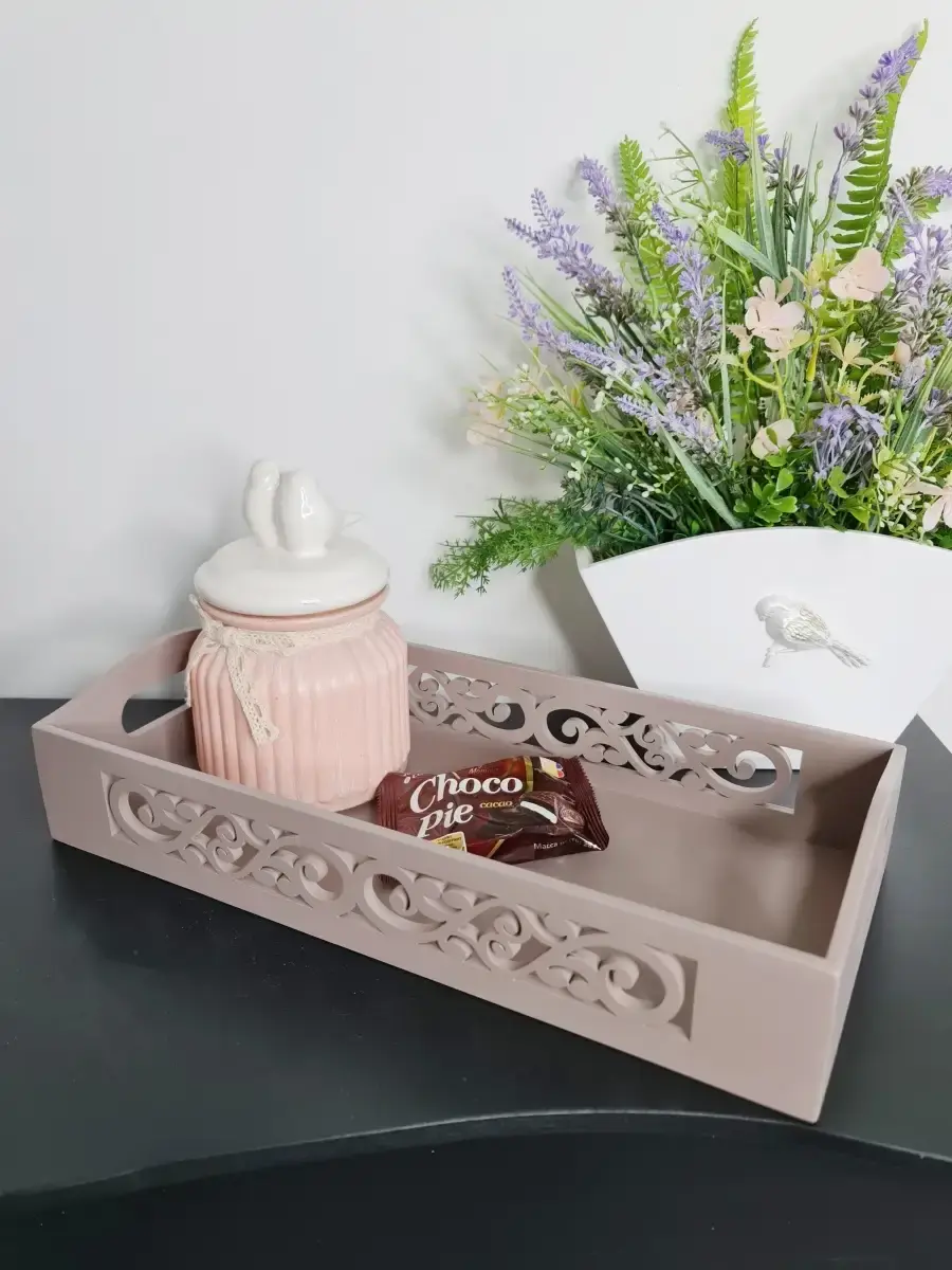 Декоративный настольный деревянный поднос для хранения, для интерьера в стиле Прованс. Изготовлен из фанеры 6 мм покрыт акриловой эмалью на водной основе. Размер подноса 36х17х4см. Этот красивый деревянный поднос станет стильным дополнением вашего интерьера. Он идеально подходит для подачи завтрака в постель или сервировки различных блюд на кухонном столе. Прямоугольный вариант с бортиками обеспечивают удобство при транспортировке еды, будь то кофе или фрукты. Дизайн позволяет легко хранить поднос, а ручки добавляют комфорта при использовании. Он может стать практичной подставкой для посуды в ванной или стильным элементом для сервировки. Наш бренд, Elenadecor, производит так-же полки, кашпо, подносы и другие декоративные элементы для создания в вашем доме атмосферы тепла и уюта . Поднос можно использовать для хранения косметики, для бижутерии, мелочей, упаковать сладкий подарок, украсить интерьер спальни, детской, ванной комнаты или прихожей .