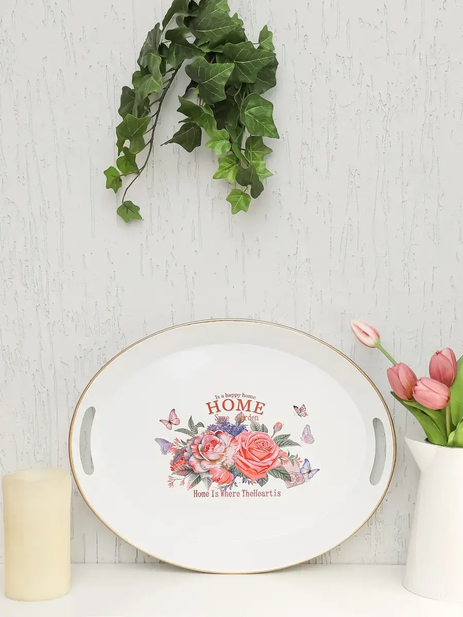 Поднос металлический прямоугольный "Розы" от бренда Elenadecor станет изысканным украшением вашего интерьера. Изготовленный из прочного металла с эмалированным покрытием, он отличается не только долговечностью, но и элегантным внешним видом. Декоративный поднос украшен очаровательным рисунком с цветами и растениями, который привносит в атмосферу помещения нотку свежести и уюта. Бортики подноса предотвращают соскальзывание предметов, что делает его удобным для подачи напитков, закусок или использования в качестве декоративной поверхности для свечей и ваз. Поднос "Розы" станет прекрасным дополнением к любому интерьерному стилю, добавляя ему шарм и индивидуальность. Размер подноса 42*33 см.
