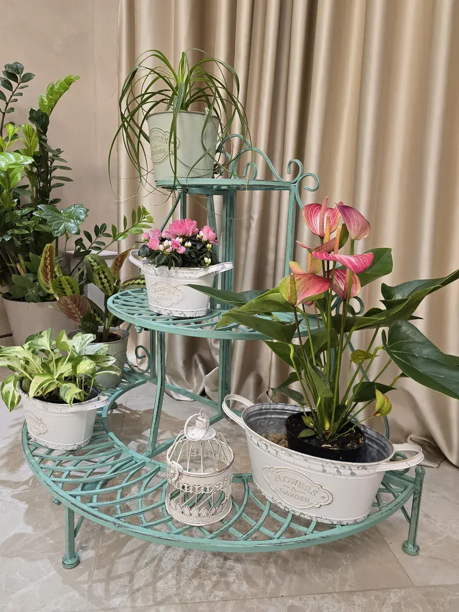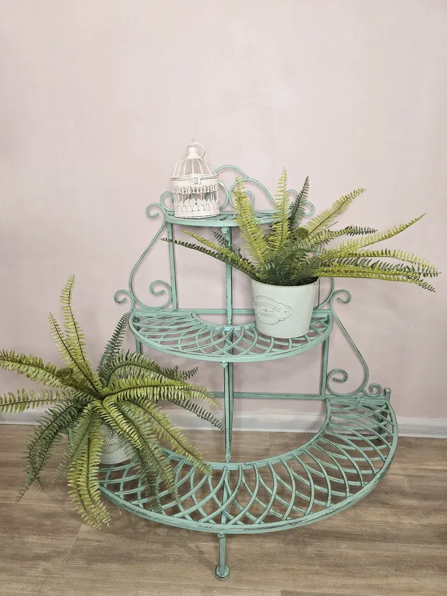 Складная металлическая подставка под цветы состоит из 3х ярусов. Подставка позволит вам создать композицию из комнатных растений на разном уровне, где каждое растение займет свое место. Красивый зеленый цвет подойдет для любого интерьера и будет гармонировать с любым интерьером. Она отлично подходит для размещения различных растений как в квартире, так и в загородном доме. Может быть использована на балконе, на веранде, для террасы, а также в гостиной или на кухне, добавляя гармонию в любой интерьер.