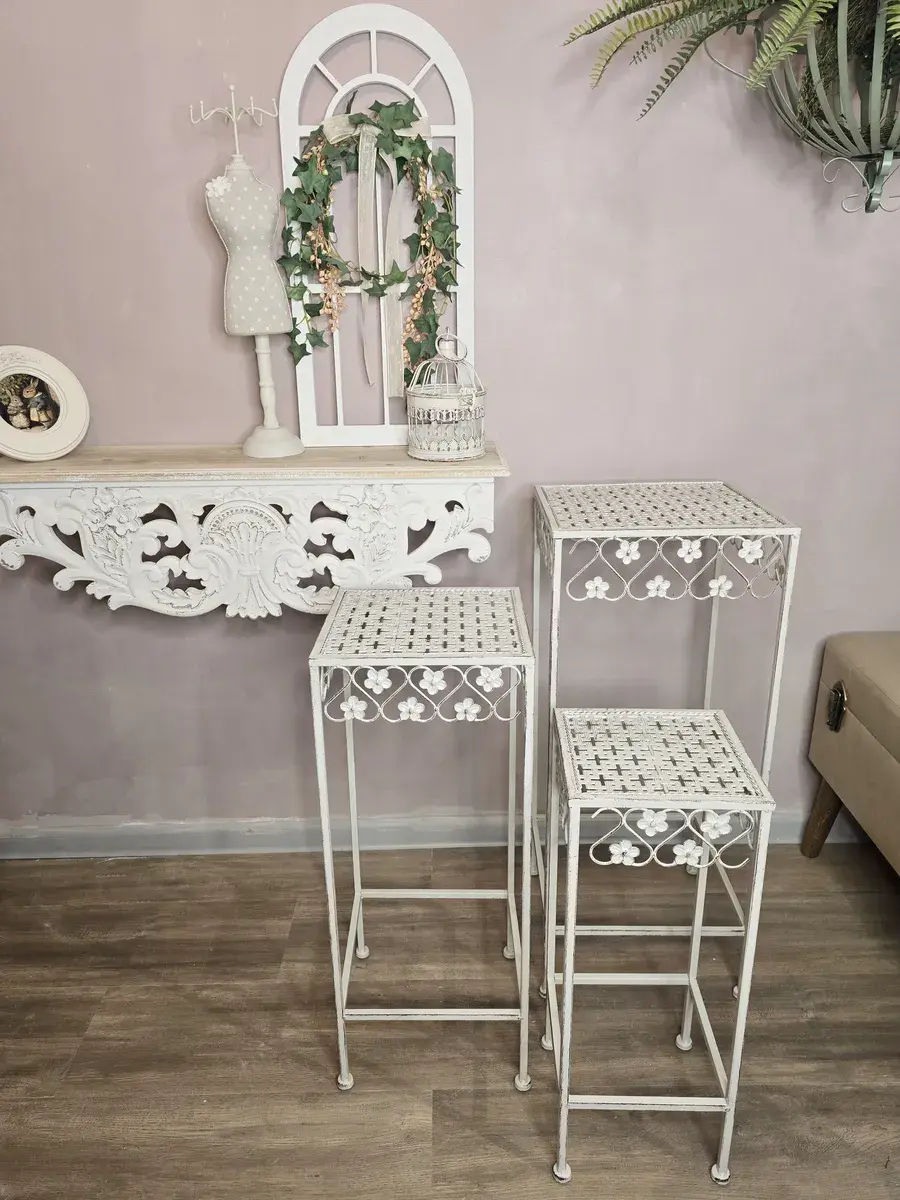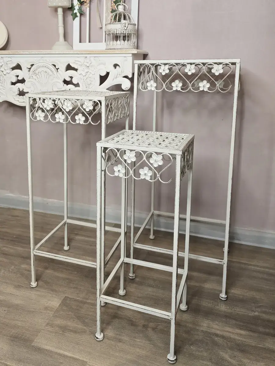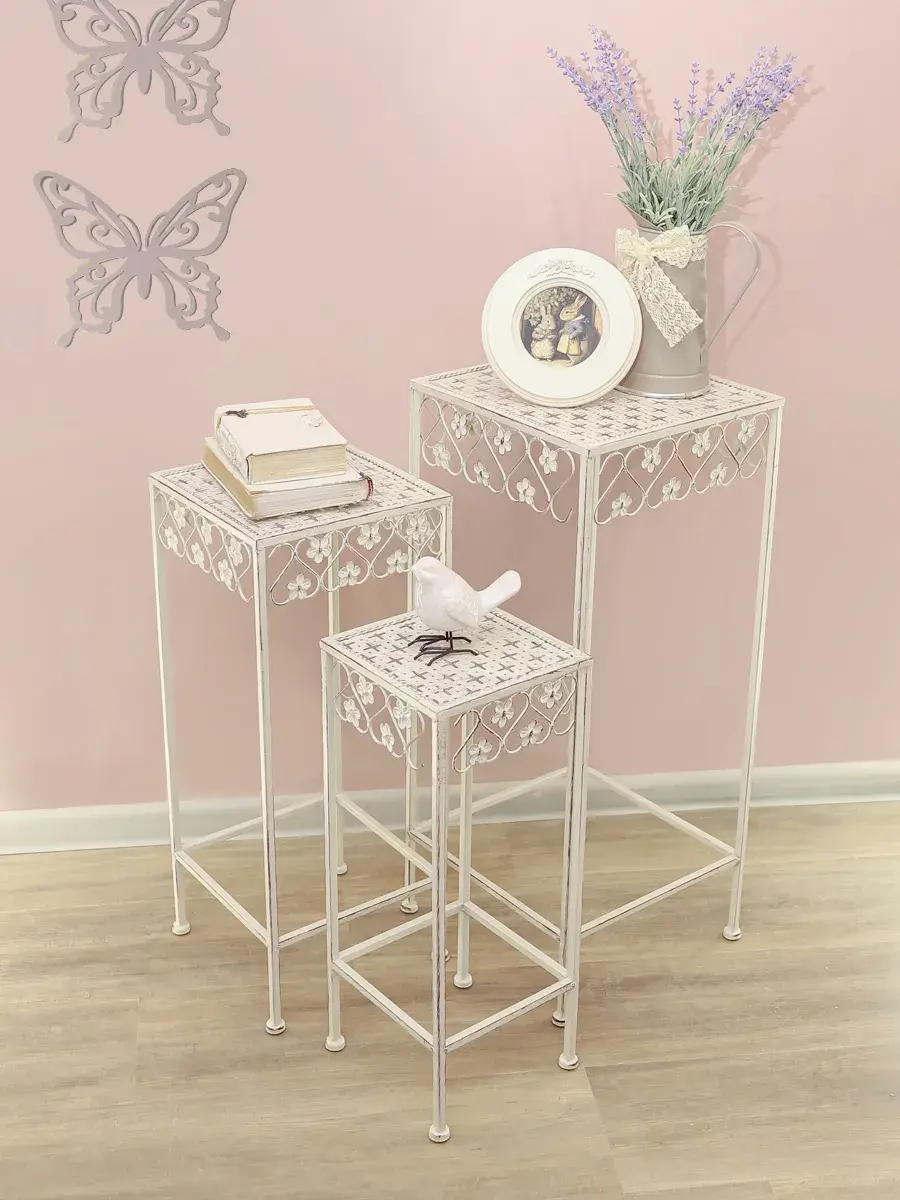Добавьте стиль и функциональность в ваш дом с набором напольных подставок под цветы "Прованс". Эти металлические подставки для цветов, выполненные в элегантном белом цвете, идеально подойдут для создания уникальных композиций из растений. Разноуровневые стойки 52, 62 и 72 см позволяют разместить растения на разных высотах, создавая визуально привлекательный декор.