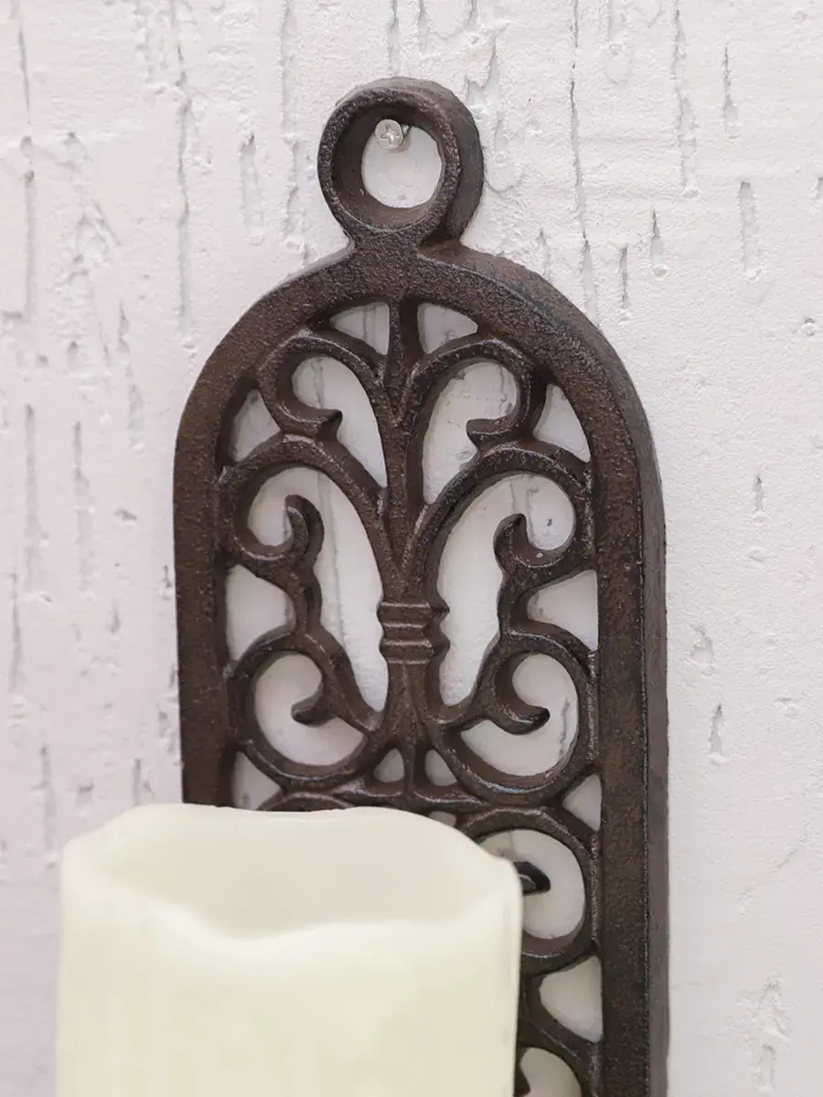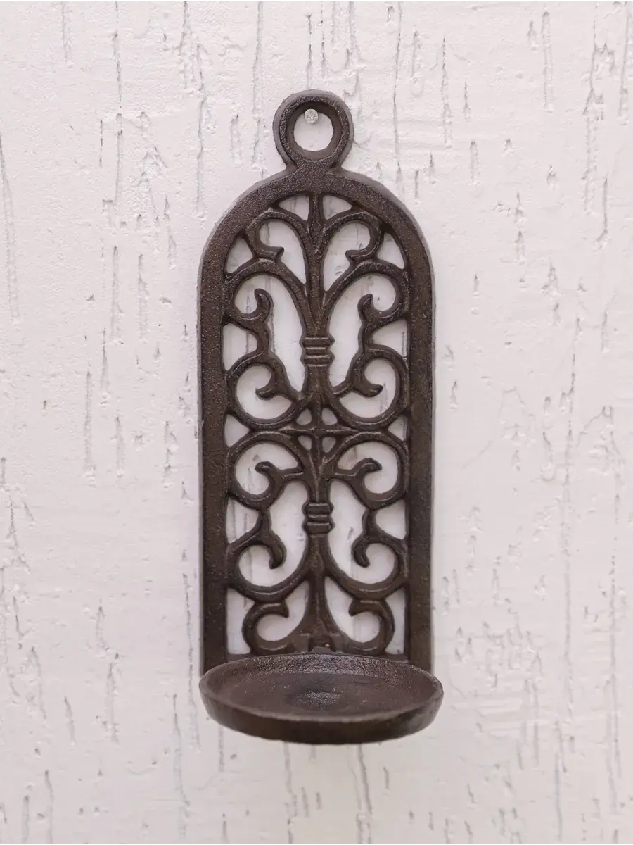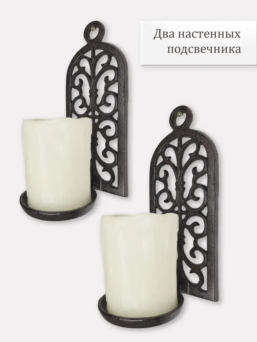 Набор из двух металлических массивных настенных подсвечника в средневековом готическом стиле. Добавит вашему интерьеру загадочности старинного замка, благодаря свету свечей и своей удивительно-красивой форме. Подсвечники тяжелые, массивные, подходят для использования на улице. Размер подсвечника 24*10 см. Свеча в комплект не входит.