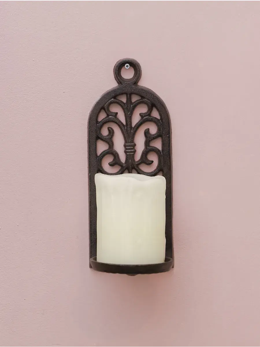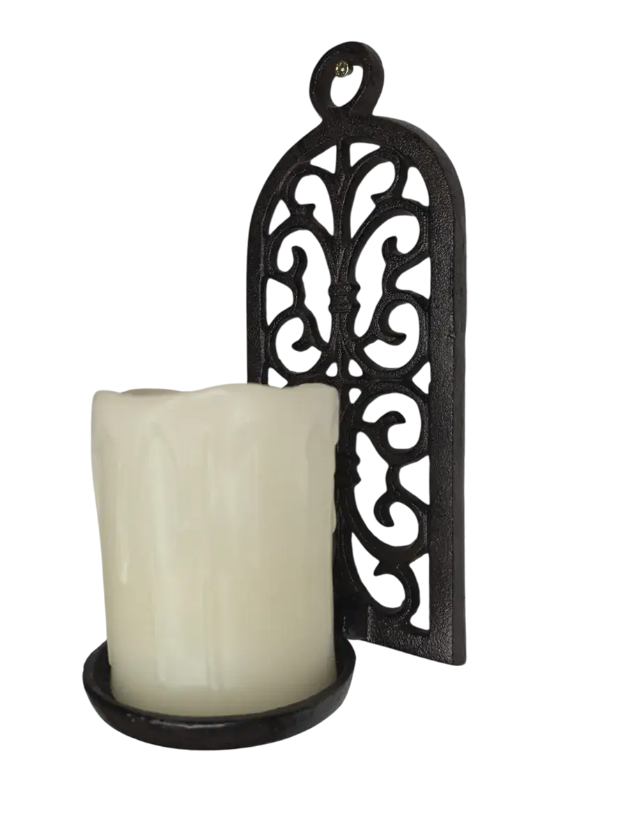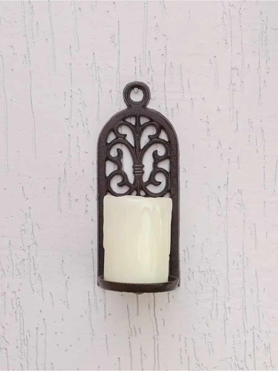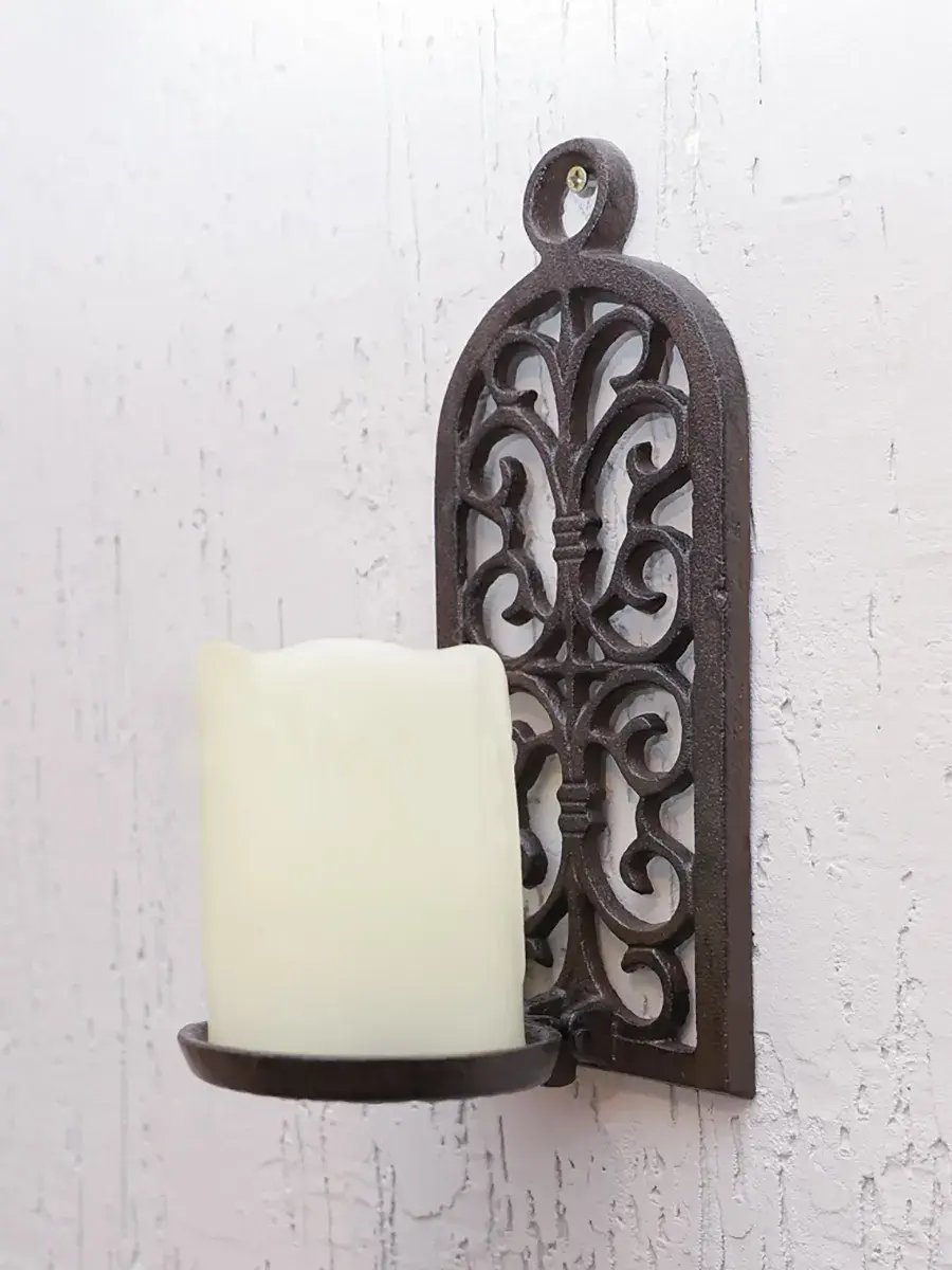 Набор из двух металлических массивных настенных подсвечника в средневековом готическом стиле. Добавит вашему интерьеру загадочности старинного замка, благодаря свету свечей и своей удивительно-красивой форме. Подсвечники тяжелые, массивные, подходят для использования на улице. Размер подсвечника 24*10 см. Свеча в комплект не входит.