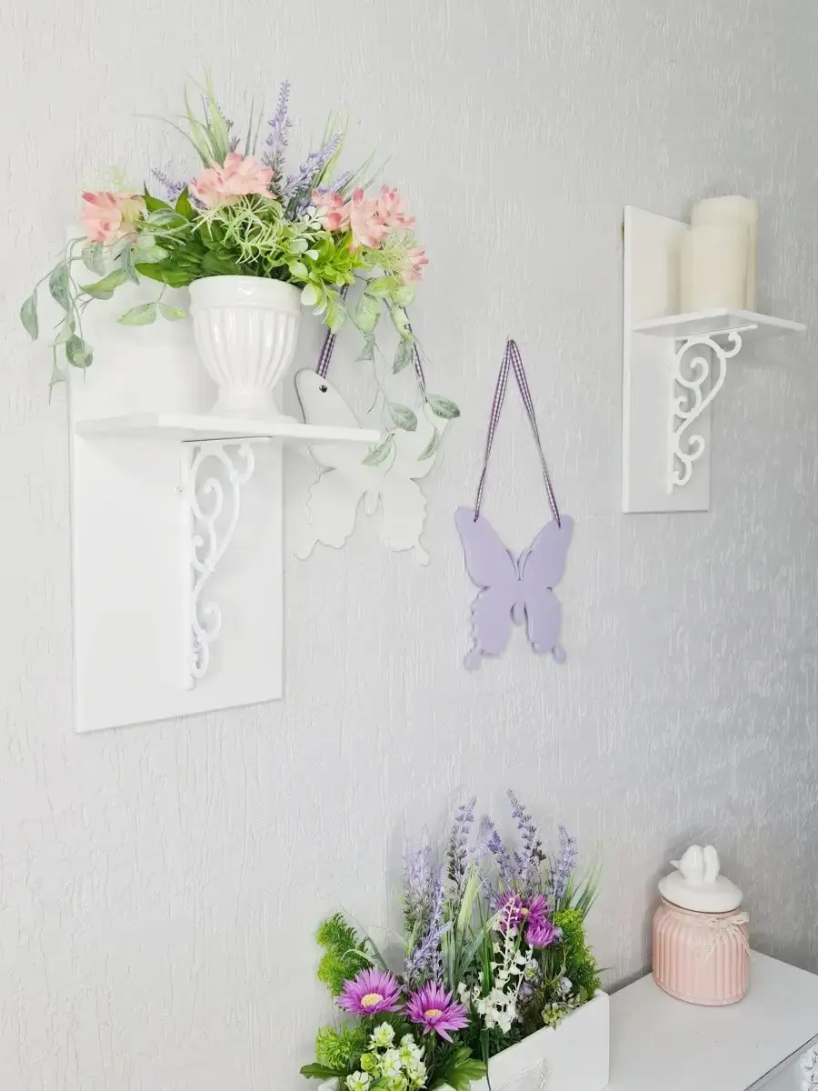 Небольшие настенные полки подойдут для цветов, ампельных растений, свечей или декоративных фигурок. Полка будет прекрасным дополнением к зеркалу, картине или панно.