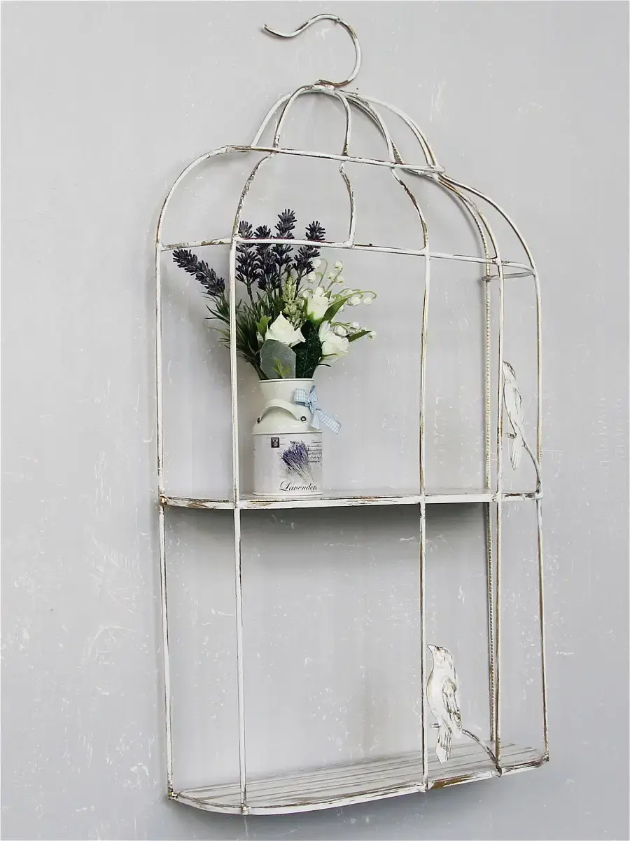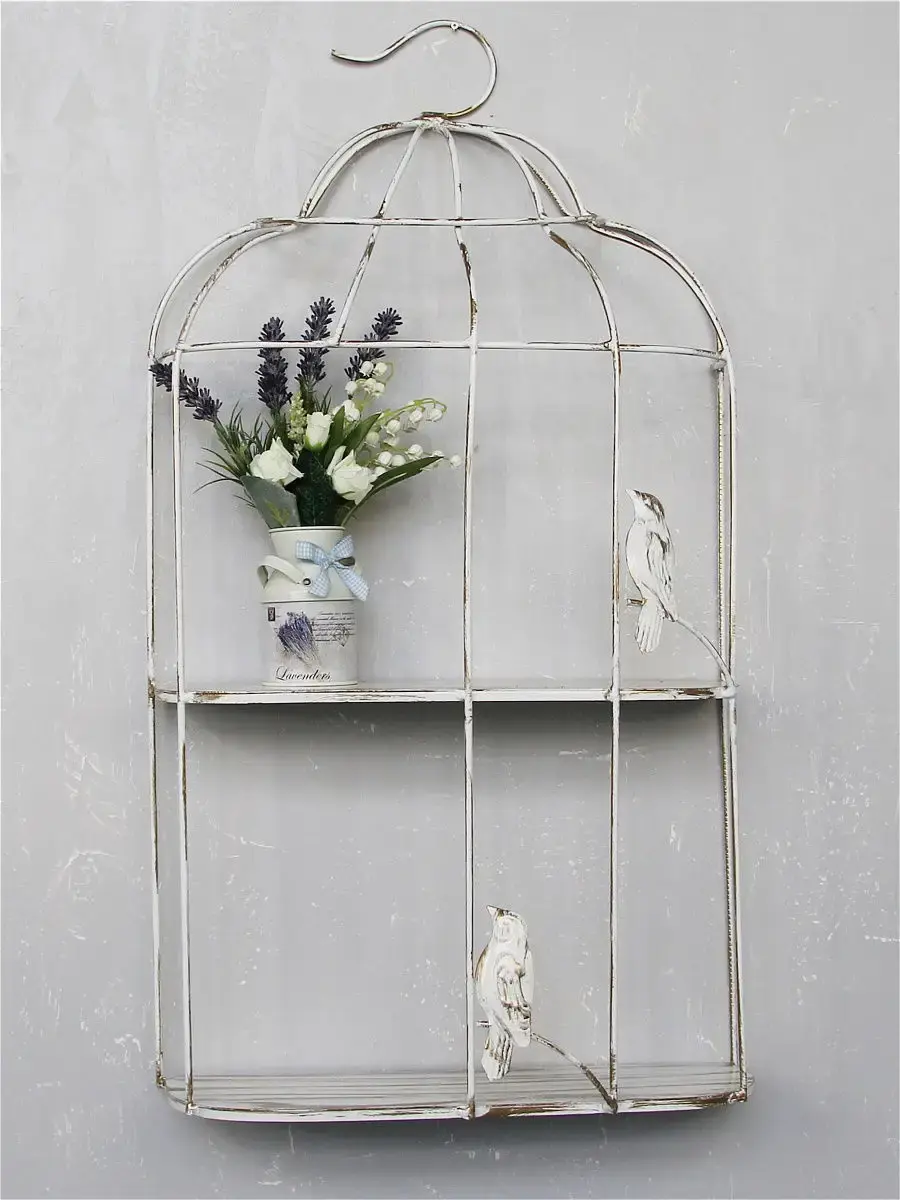 Декоративная настенная полка в виде клетки с двумя птичками. Полка подойдет для небольших сувениров, цветов или просто как настенный декор в приходей или на кухни для специй.