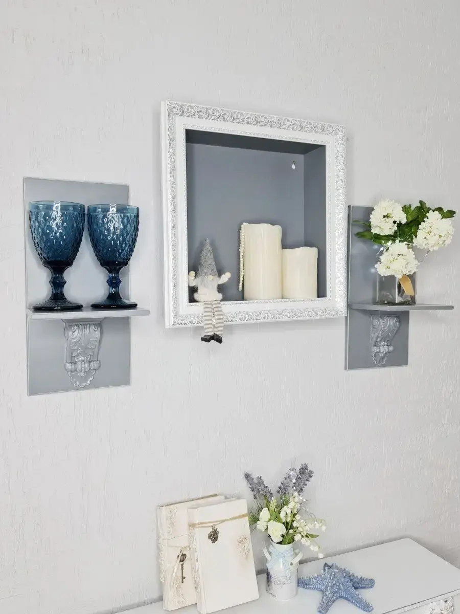 Полка в раме - красивый практичный настенный декор для дома и офиса. Квадратная деревянная полка в багетной раме для современного интерьера комнаты, прихожей или кухни. Полки представлены в большом ассортименте, в разных цветах и каждый сможет найти для себя лучший вариант для декора. Размер внешний у всех 38х38х12см, внутренний размер 28х28х9 см. с широким багетом и 32х32 с узкой рамой. Можно комбинировать разные цвета рам в детской комнате, размещать награды или сувениры. Можно дополнить картинами в аналогичных рамах. Приятных покупок!