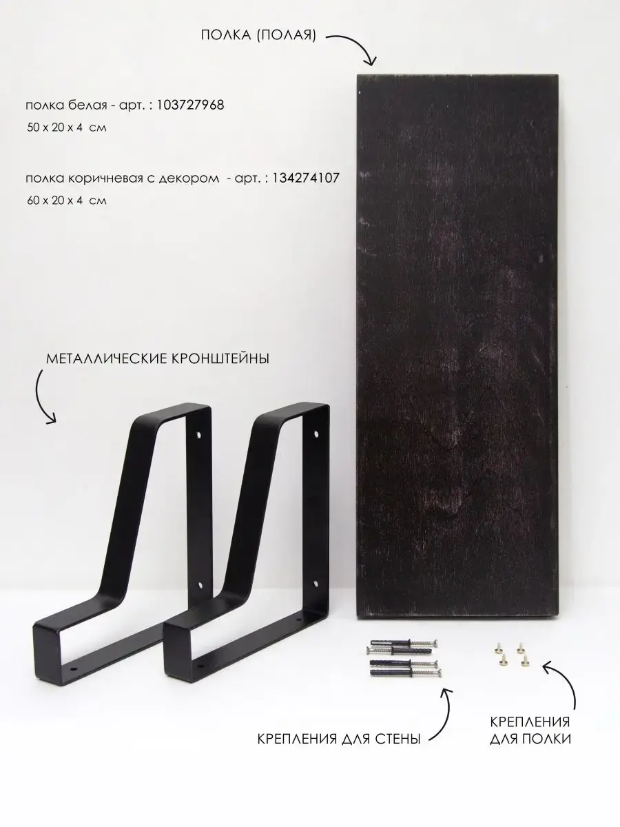Полка - 1 шт, кронштейн металлический - 2 шт, крепеж