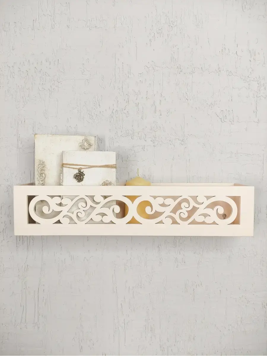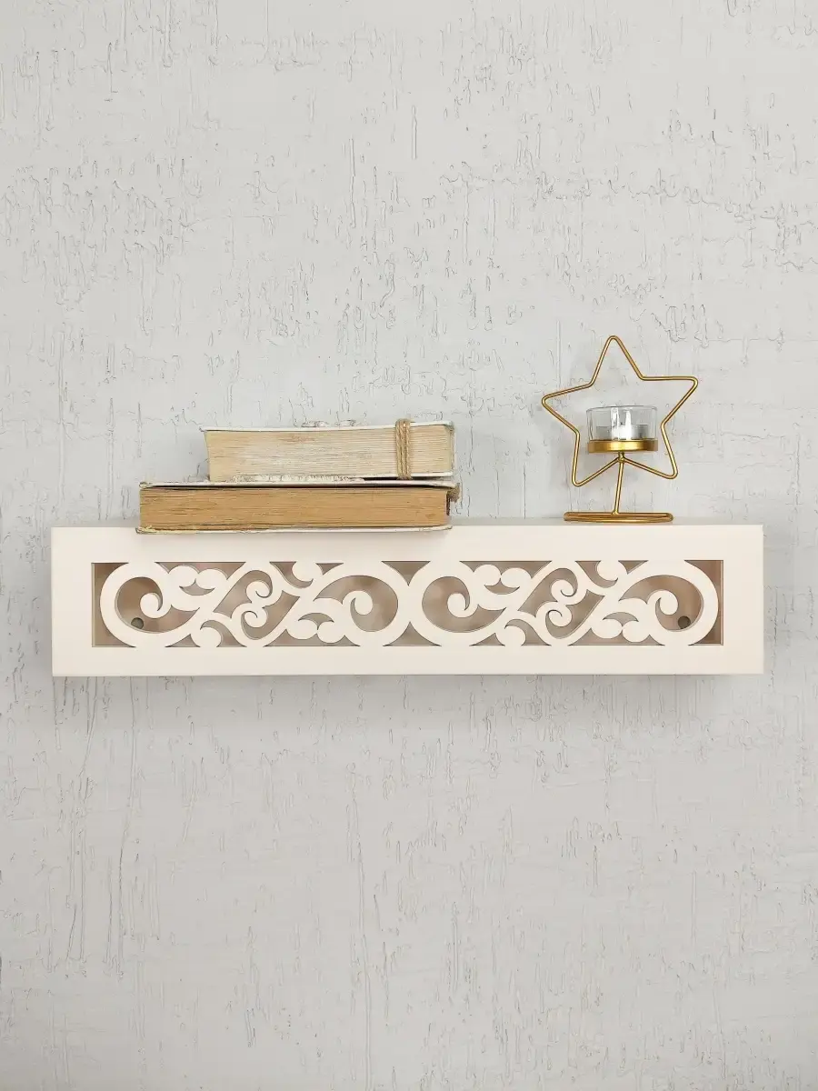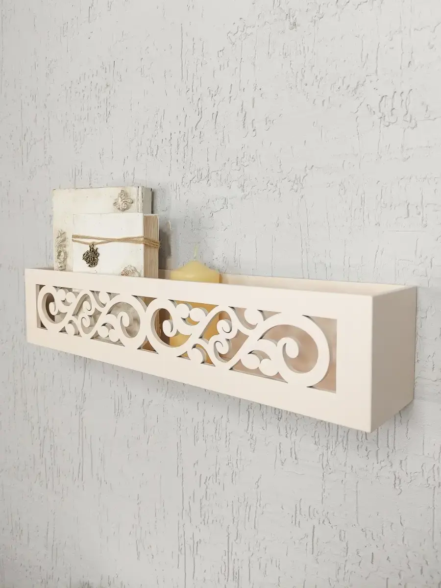 Подвесная конструкция позволяет с легкостью крепить полку на стену, освобождая пространство на полу. Декоративные элементы, размещенные на полке, подчеркнут индивидуальность вашего стиля. А бортик предотвратит падение вещей, обеспечивая надежное хранение. Полка станет идеальным местом для мелочей и аксессуаров, а также украсит вашу гардеробную или офисное пространство, создавая гармоничную атмосферу.