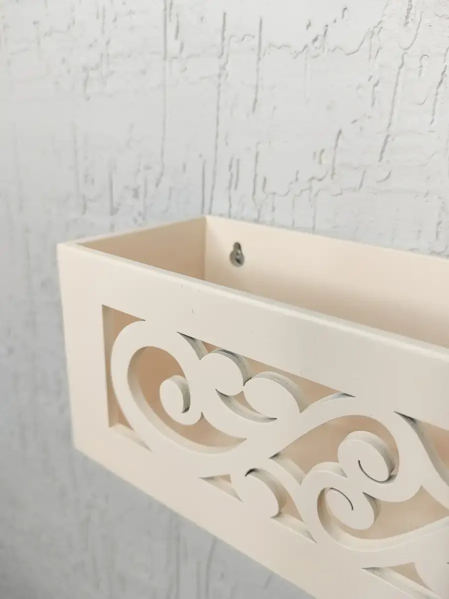 Она имеет два варианта крепления на стене, как полку или как ящик-полку. Очень красивую композицию можно создать из нескольких полок. Покрашена акриловой эмалью на водной основе. Крепления для стены в комплекте. Размер полки 49х10х10 см.