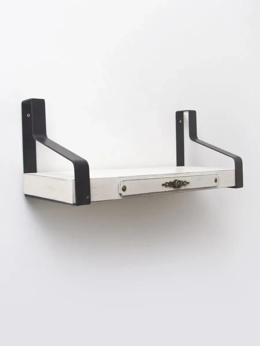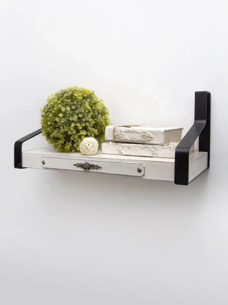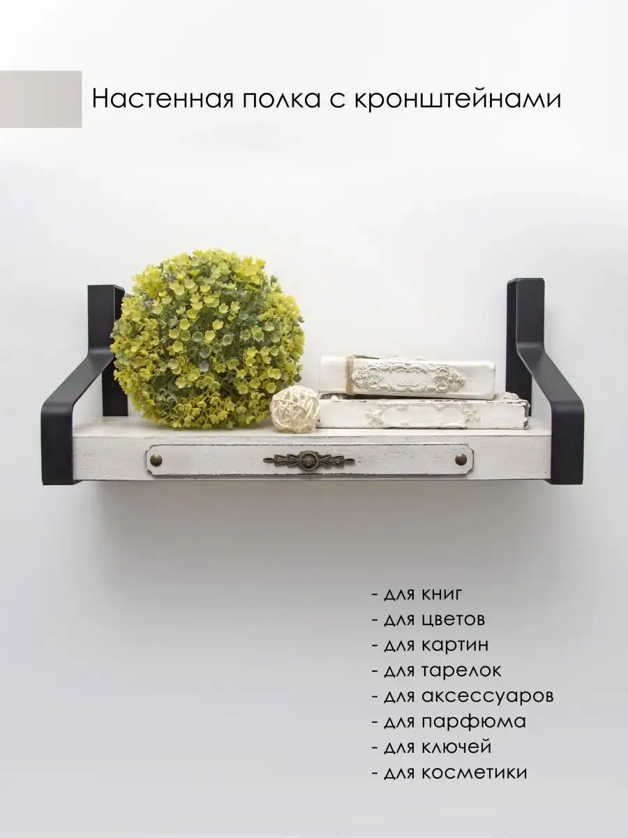 Подвесная конструкция позволяет с легкостью крепить ее на стену, освобождая пространство на полу. Декоративные элементы, размещенные на ней, подчеркнут индивидуальность вашего стиля. А встроенный ящик предотвратит падение вещей, обеспечивая надежное хранение. Металлические кронштейны добавляют прочности и устойчивости, а черные акценты придают современный вид. Полка станет идеальным местом для коллекций книг, мелочей и аксессуаров, а также украсит вашу гардеробную или офисное пространство, создавая гармоничную атмосферу.
