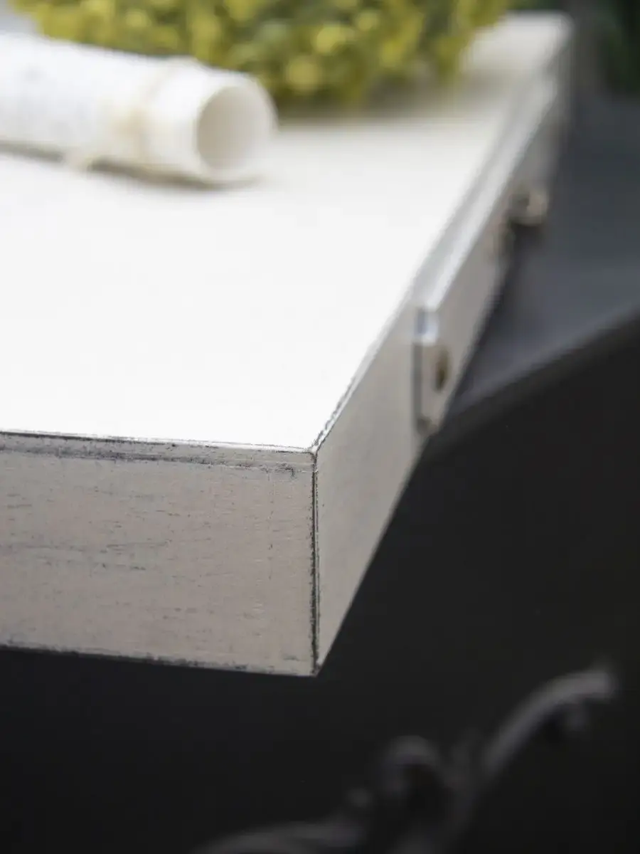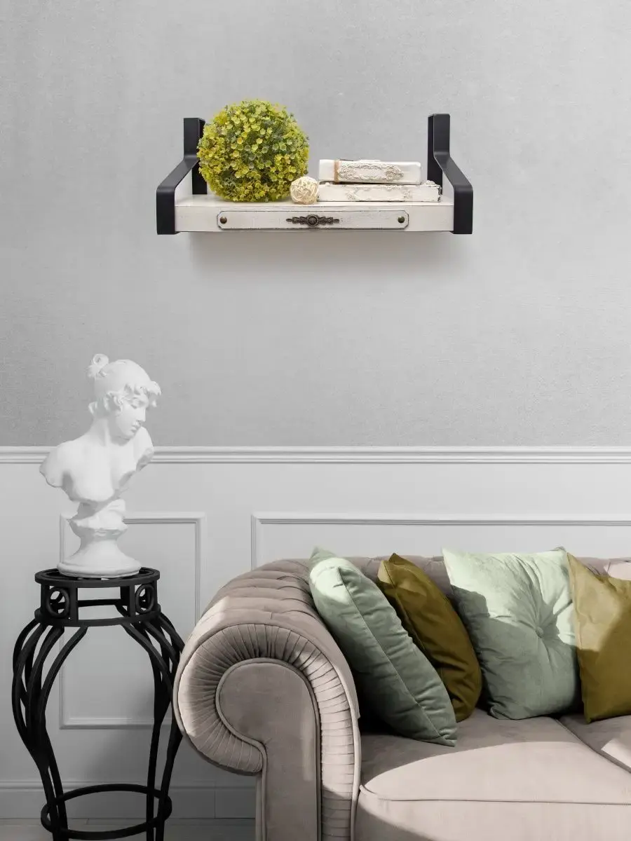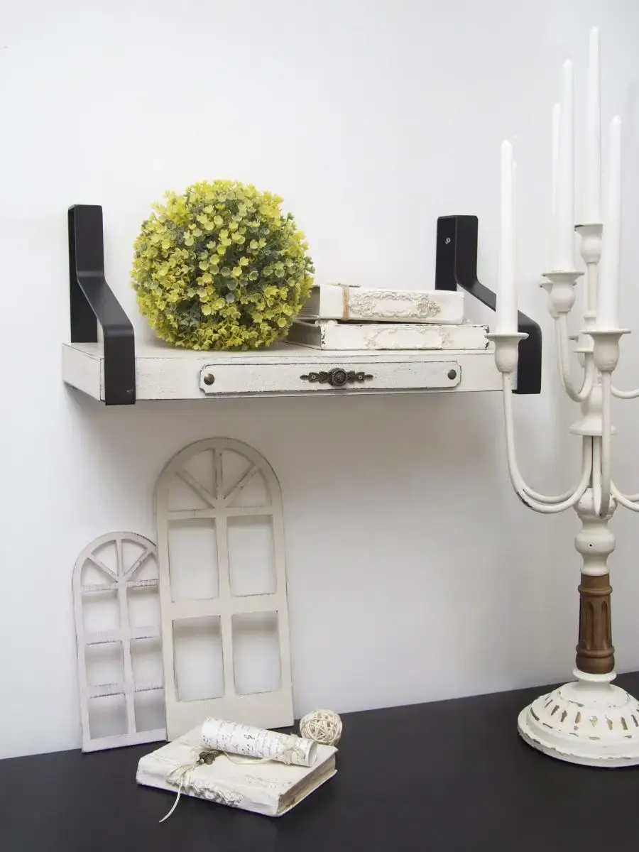 Подвесная конструкция позволяет с легкостью крепить ее на стену, освобождая пространство на полу. Декоративные элементы, размещенные на ней, подчеркнут индивидуальность вашего стиля. А встроенный ящик предотвратит падение вещей, обеспечивая надежное хранение. Металлические кронштейны добавляют прочности и устойчивости, а черные акценты придают современный вид. Полка станет идеальным местом для коллекций книг, мелочей и аксессуаров, а также украсит вашу гардеробную или офисное пространство, создавая гармоничную атмосферу.