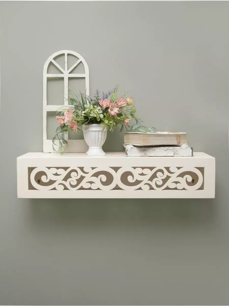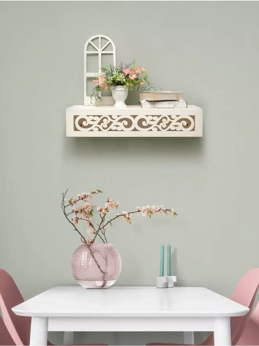 Подвесная конструкция позволяет с легкостью крепить полку на стену, освобождая пространство на полу. Декоративные элементы, размещенные на полке, подчеркнут индивидуальность вашего стиля. А бортик предотвратит падение вещей, обеспечивая надежное хранение. Полка станет идеальным местом для мелочей и аксессуаров, а также украсит вашу гардеробную или офисное пространство, создавая гармоничную атмосферу.