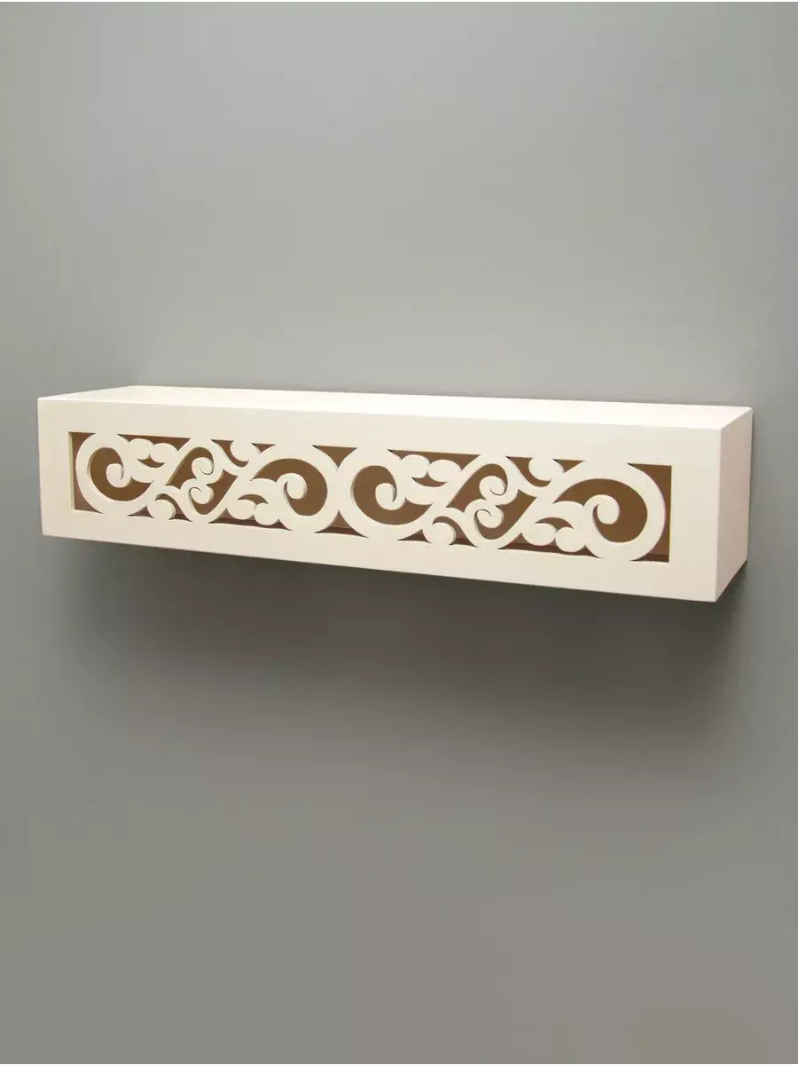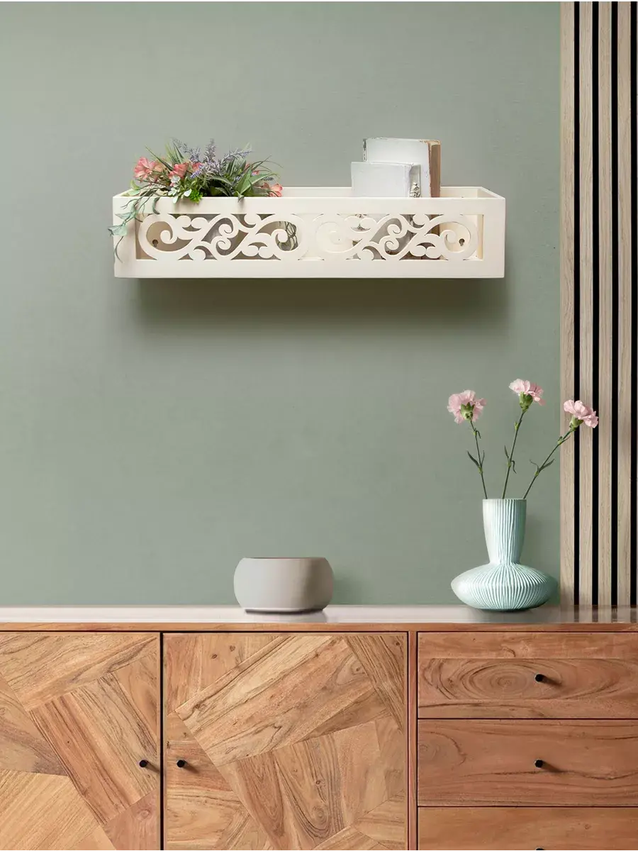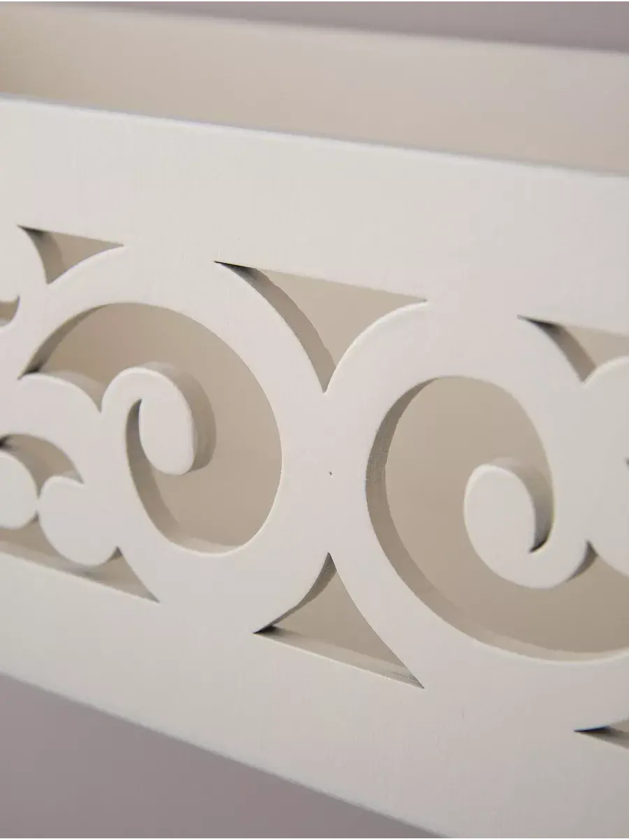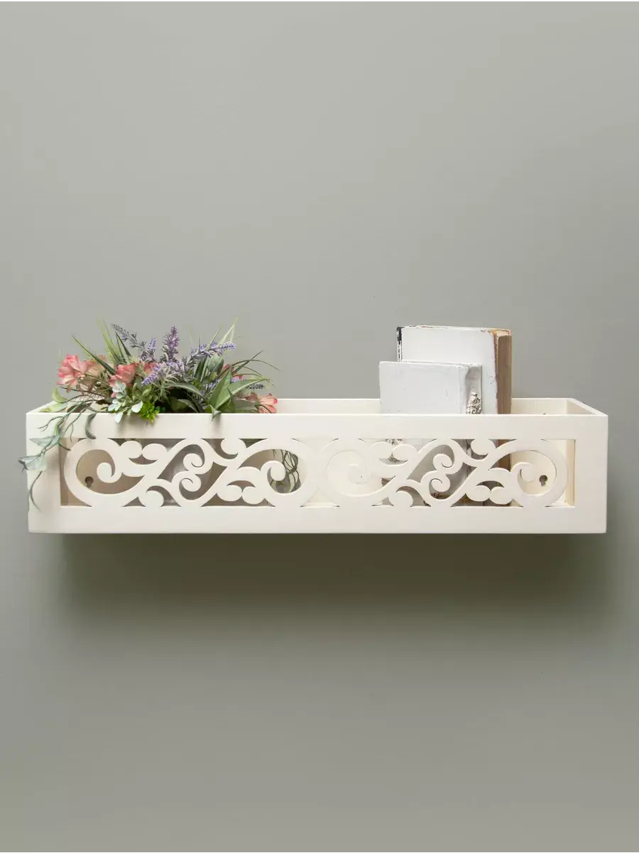 Она имеет два варианта крепления на стене, как полку или как ящик-полку. Передняя панель резная. Покрашена акриловой эмалью на водной основе. Крепления для стены в комплекте. Размер полки 60х15х12 см.