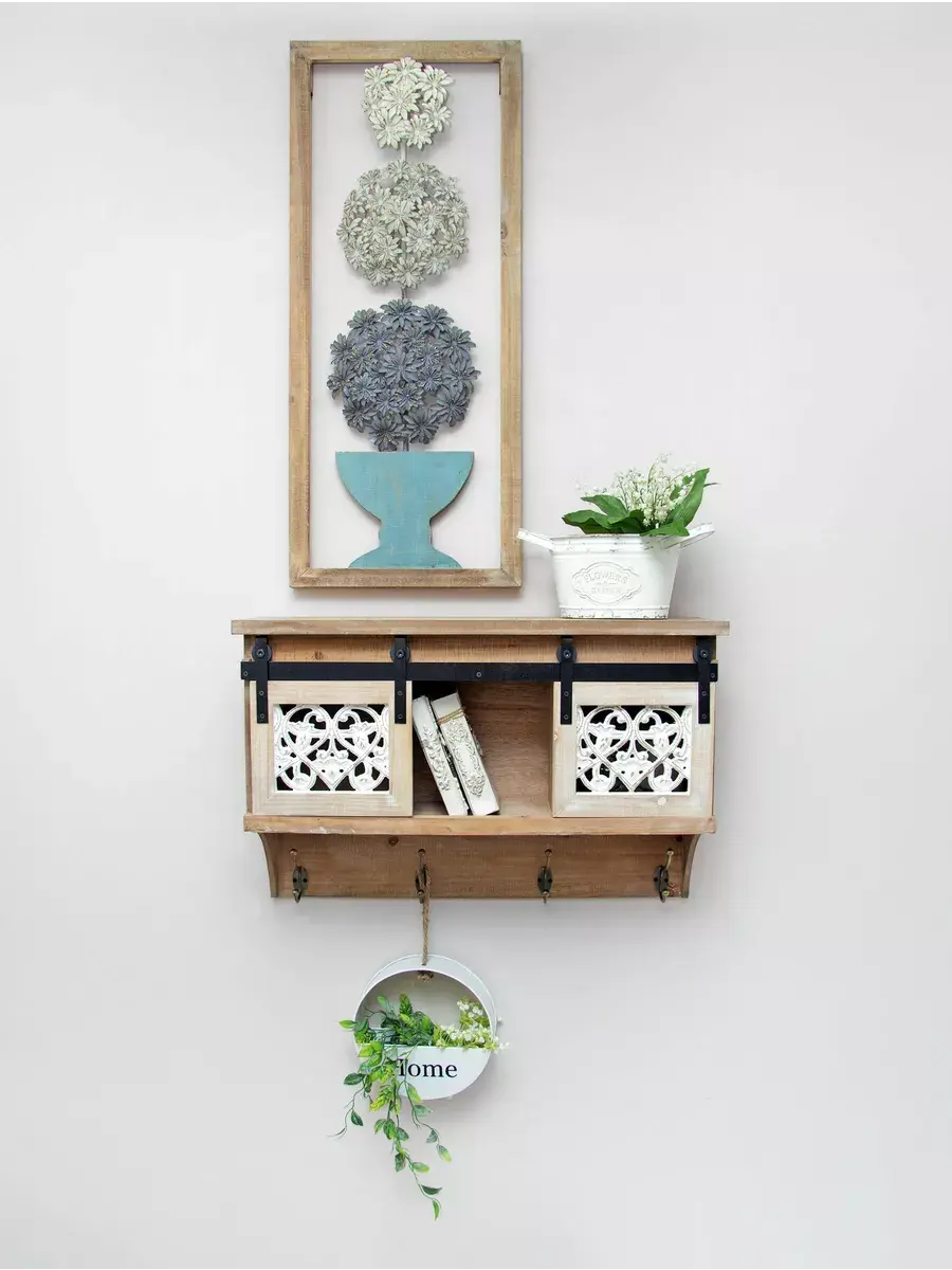 полка с дверками и крючками