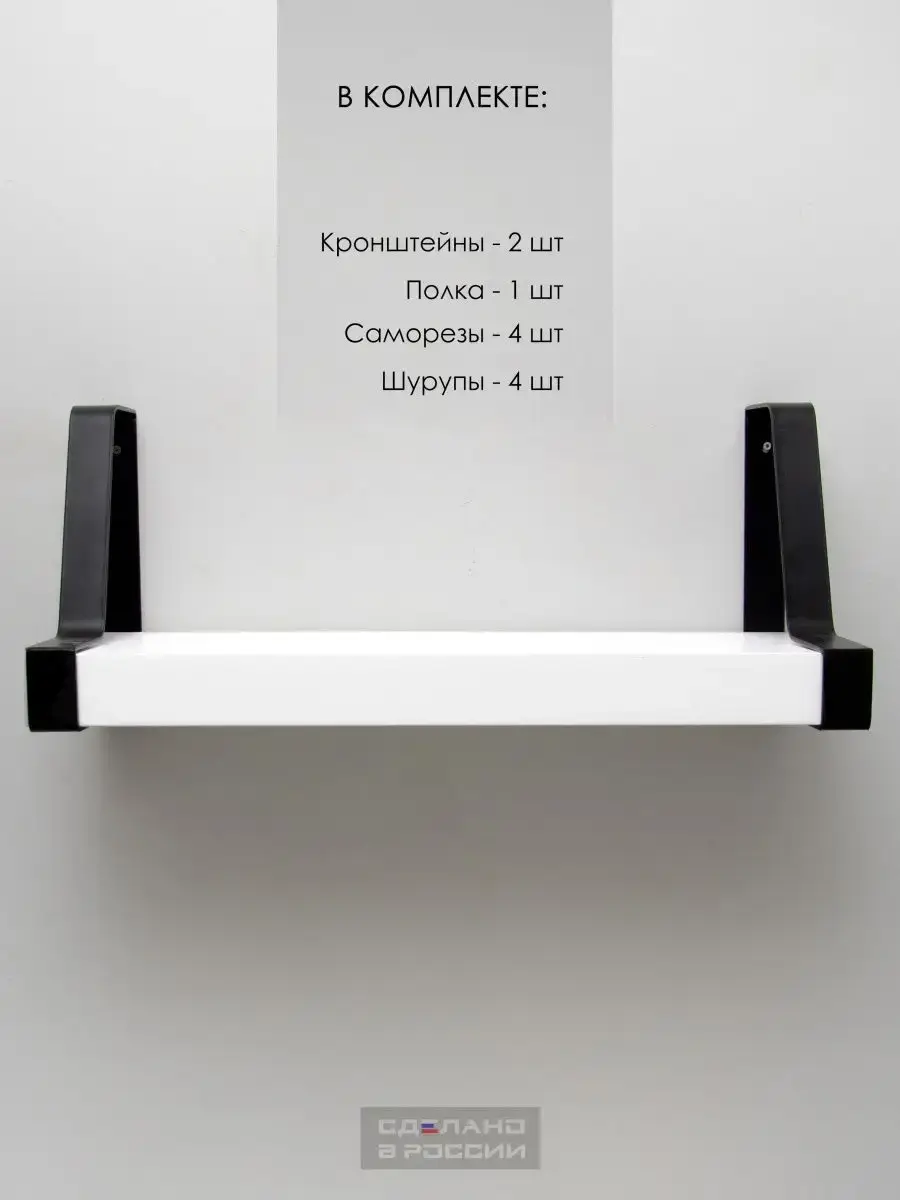 Полка - 1 шт, кронштейн металлический - 2 шт, крепеж