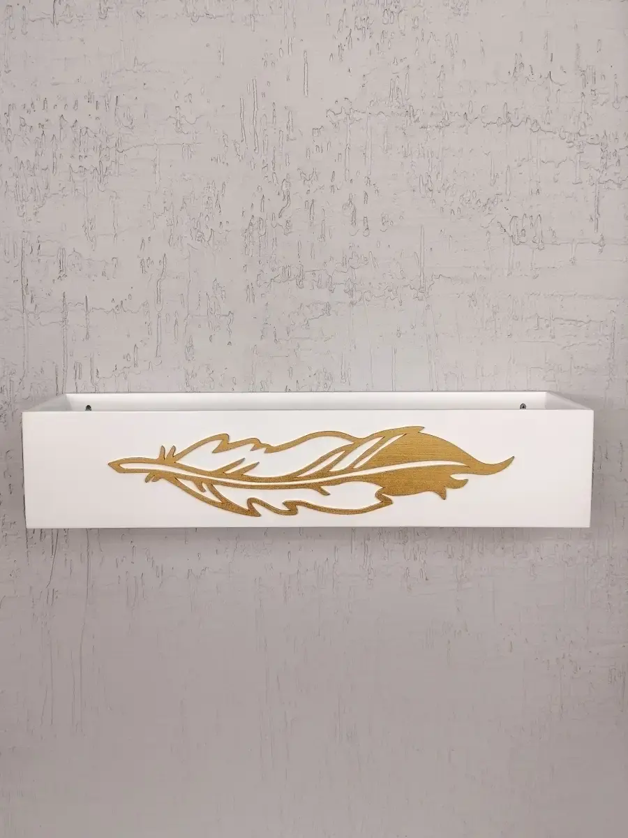 Декоративная настенная деревянная полка. Она имеет два варианта крепления на стене, как полку или как ящик-полку. Очень красивую композицию можно создать из нескольких полок. Покрашена акриловой эмалью на водной основе. Крепления для стены в комплекте.Размер полки 49*10*10 см.
