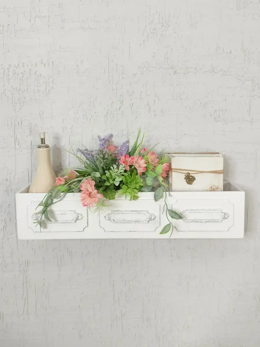 Полка имеет два варианта крепления на стене, как полку или как ящик-полку. Очень красивую композицию можно создать из нескольких полок. Покрашена акриловой эмалью на водной основе. Крепления для стены в комплекте.Размер полки 49*10*10 см.