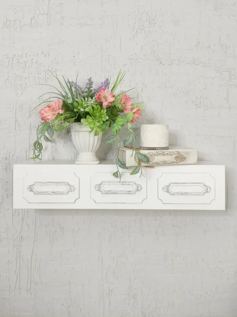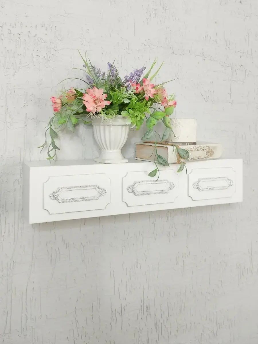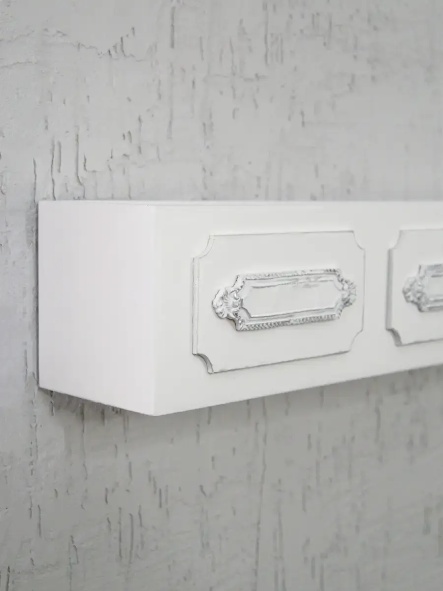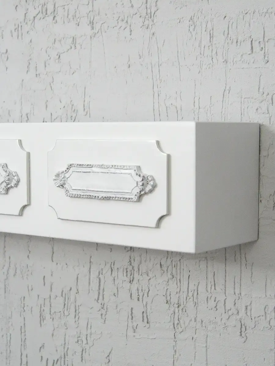 Подвесная конструкция позволяет с легкостью крепить полку на стену, освобождая пространство на полу. Декоративные элементы, размещенные на полке, подчеркнут индивидуальность вашего стиля. А бортик предотвратит падение вещей, обеспечивая надежное хранение. Полка станет идеальным местом для мелочей и аксессуаров, а также украсит вашу гардеробную или офисное пространство, создавая гармоничную атмосферу.
