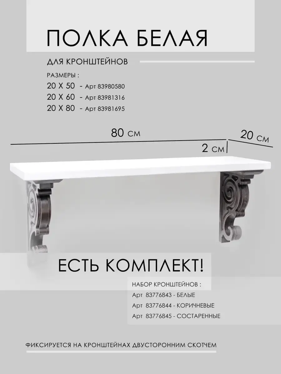 Полка изготовлена из березовой фанеры высшего сорта толщиной 20 мм. Окрашена акриловой эмалью, морилкой без запаха. Размер полки 60х20 см.