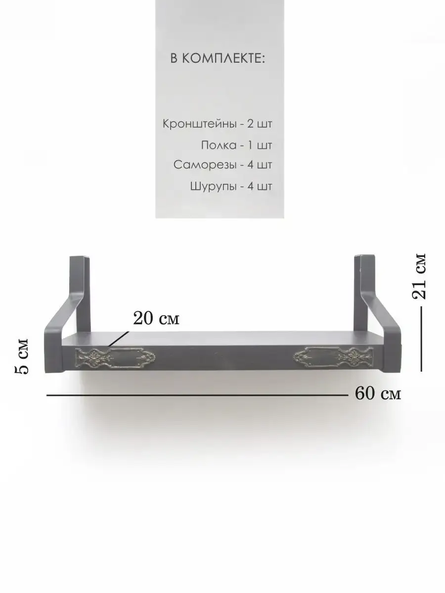 Полка - 1 шт, кронштейн металлический - 2 шт, крепеж