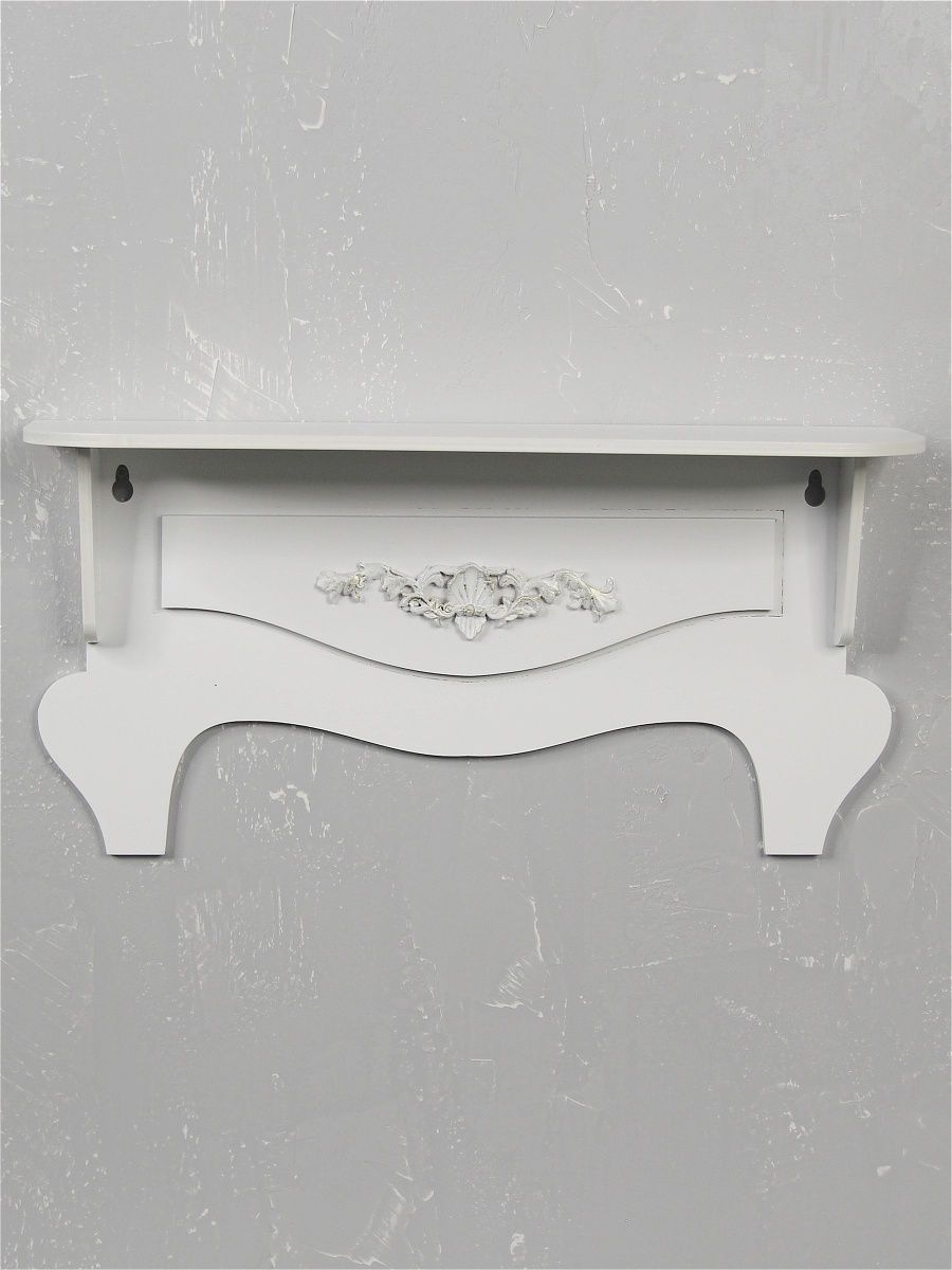 Небольшая декоративная интерьерная полка в стиле прованс. Настенная полка-комодик с лепным декором украсит ванную комнату, подойдет для косметики и ароматов, в детской для небольших игрушек и фотографий, в спальне удобно разместить смартфон, очки или букетик цветов. Глубина полки 10 см. Хорошо сочетается с зеркальным окном. Для крепления на стену в комплекте два шурупа с дюбелями. Такому подарку будут рады и дети и взрослые, все кто любит прованс и нежный, белый интерьер.