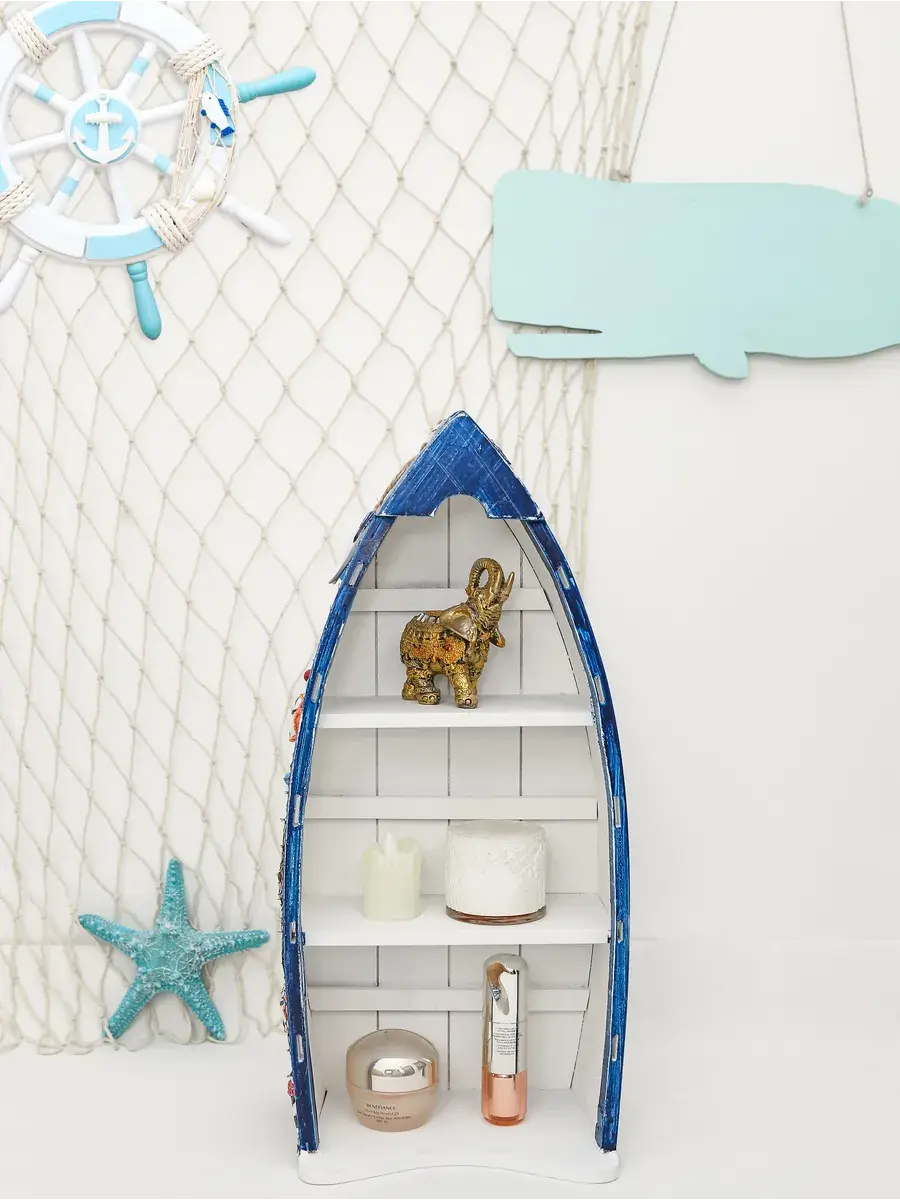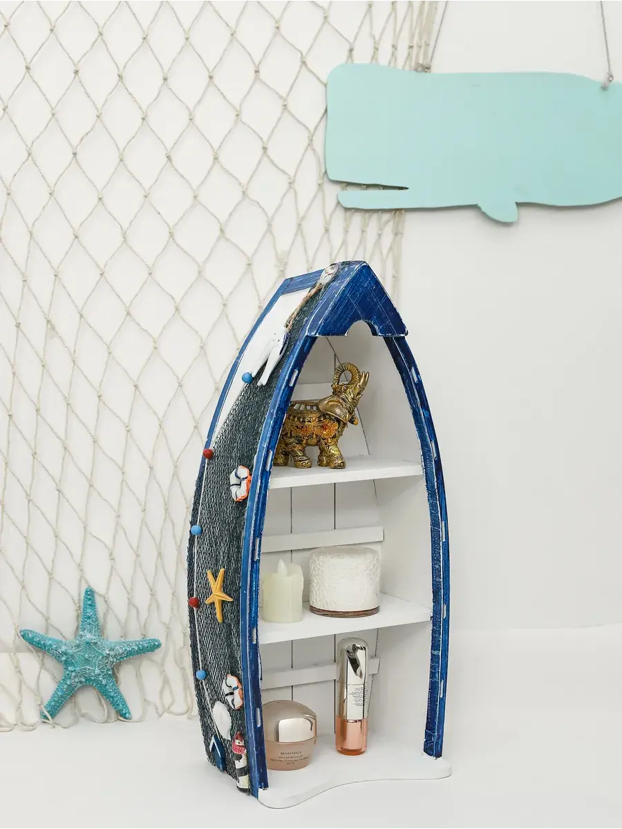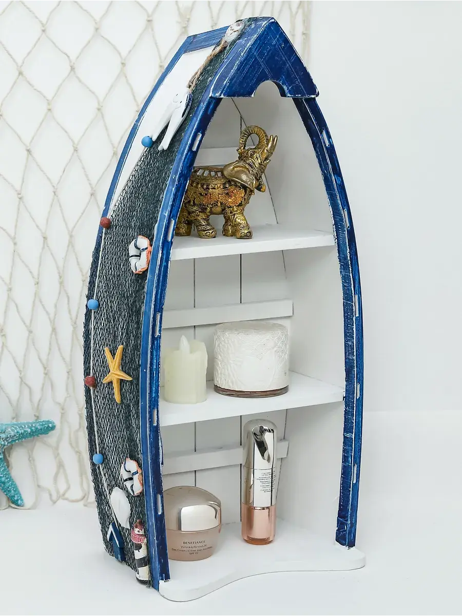 Комплект из трех полок в морском стиле от Elenadecor станет стильным и функциональным дополнением к любому интерьеру. Набор полок, выполненных из дерева с матовой поверхностью, придаст вашей гостиной, детской или ванной комнате неповторимый шарм морского бриза. Полки в форме лодки не только оригинально выглядят, но и удобны в использовании, позволяя разместить книги, декоративные элементы, игрушки или ванные принадлежности. Открытый тип фасада обеспечивает легкий доступ к вещам, а задняя панель гарантирует надежность и устойчивость конструкции. Комплект полок Elenadecor - это не просто мебель, а настоящий морской декор, который добавит в ваш дом нотку свежести и уюта. Размеры каждой полке указаны на фото.