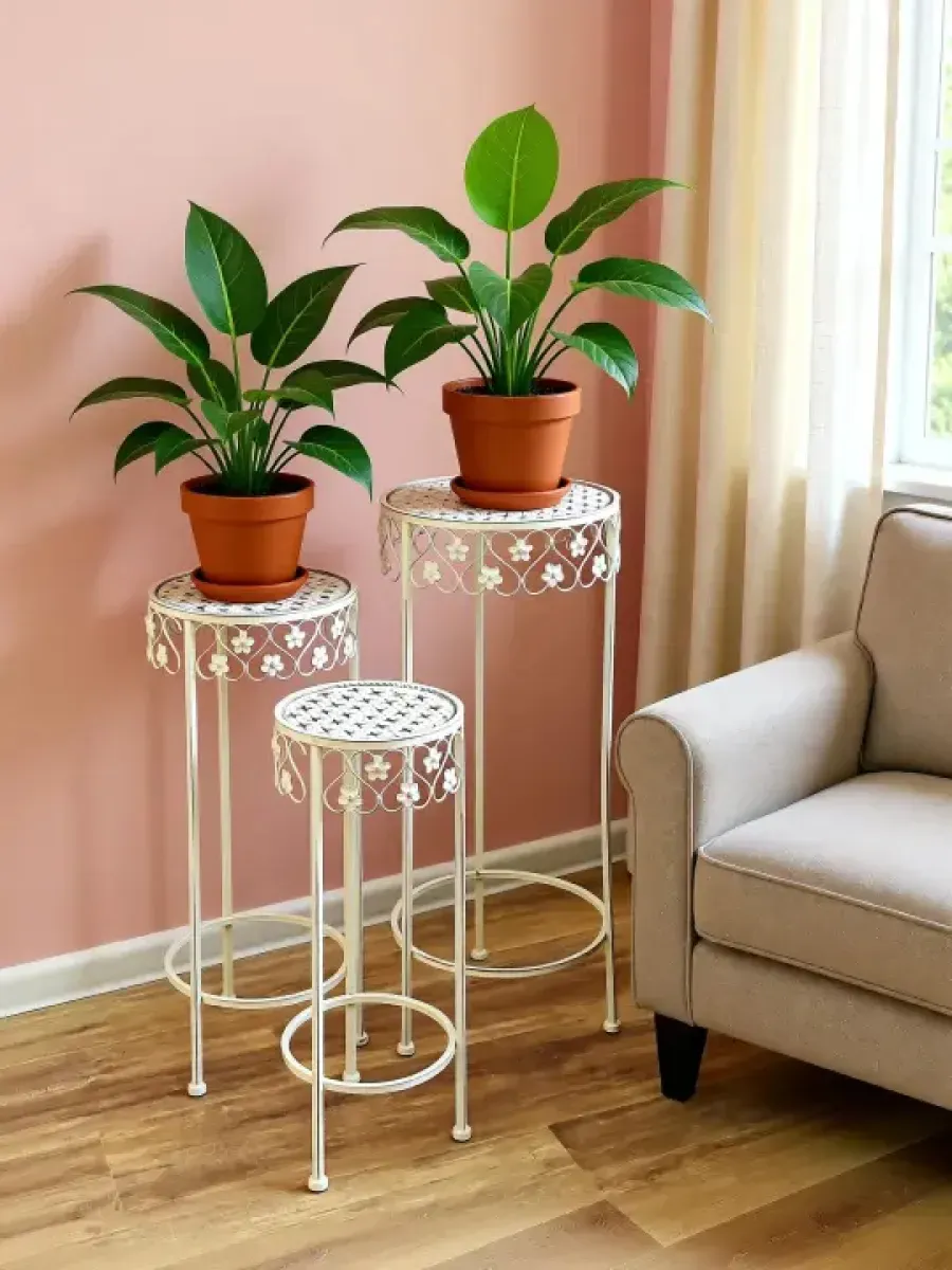 Создайте уникальный интерьер с набором из трех напольных металлических подставок для цветов. Прочные и устойчивые, они обеспечивают надежную поддержку даже для самых тяжелых кашпо, выдерживая значительный вес. Подставки подходят для кашпо диаметром до 24 см, что делает их универсальными для любого стиля интерьера. Эти декоративные элементы не только функциональны, но и эстетичны, они придадут вашему дому нотку изысканности и утонченности. Идеально подходят для использования как в гостиной, так и на балконе, они помогут создать уютный уголок зелени и спокойствия. Подставка для цветов напольная металлическая – это не просто аксессуар, а важная часть вашего интерьера, подчеркивающая ваш вкус и индивидуальность. Дополните их настенными панно или подвесными кашпо из коллекции "Дивный сад" для создания гармоничного пространства. Превратите ваш дом в стильный оазис с этими элегантными подставками.