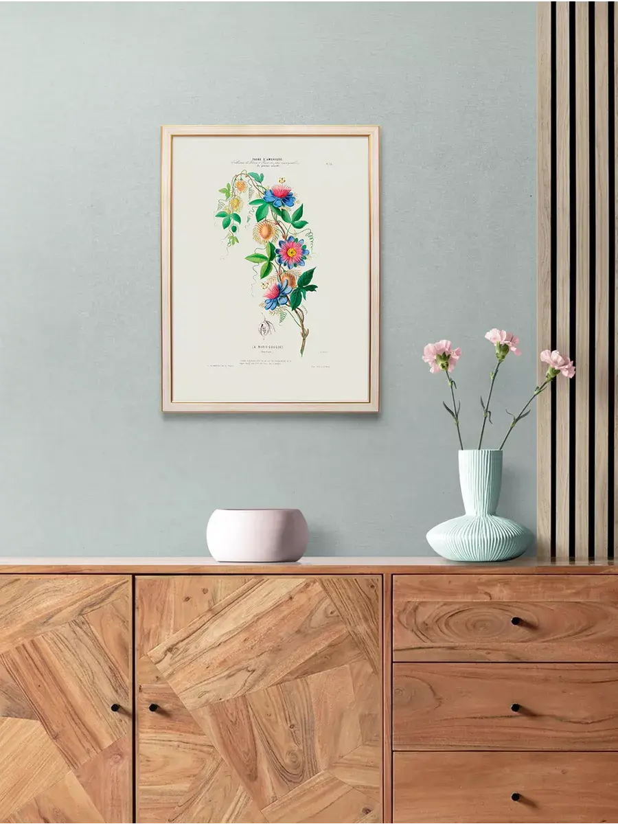 Настенный декор - постер с винтажными цветами из каталога по ботанике 19 века в лаконичной бежевой раме с золотым кантом. Постер напечатан на бумаге и заламинирован для защиты изображения. Постеры коллекции станут прекрасным дополнением и украшением интерьера. Коллекция постеров украсит и дополнит интерьер кухни, столовой, гостиной. Милый сувенир на Пасху, новый год, 8 марта или просто подарок без повода. Рама изготовлена из полиуретана. Размер изображения 30*40 см, размер по раме 32*42 см. Крепление для стены в комплекте.