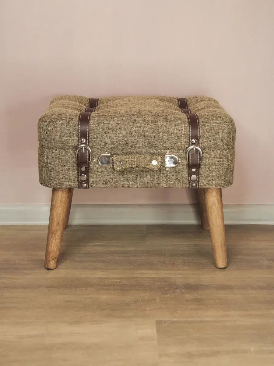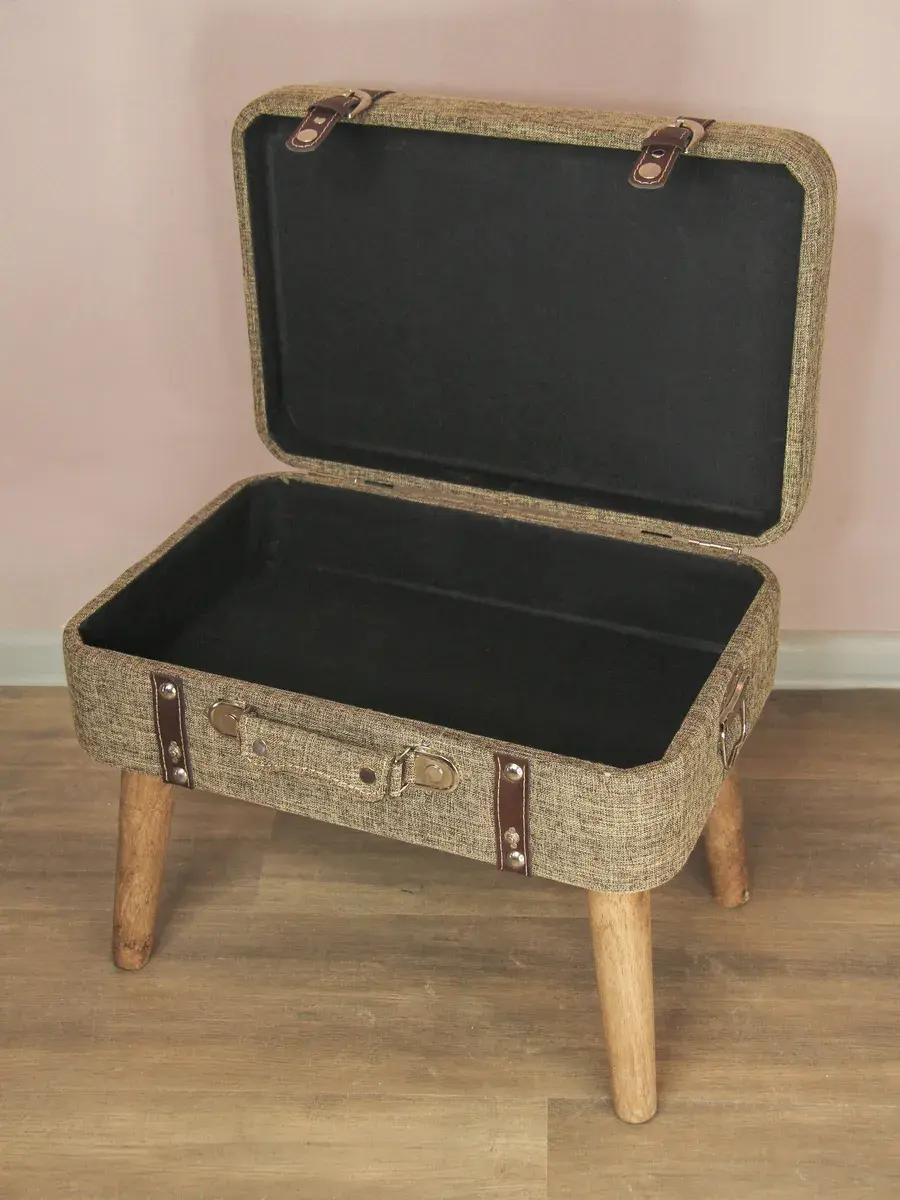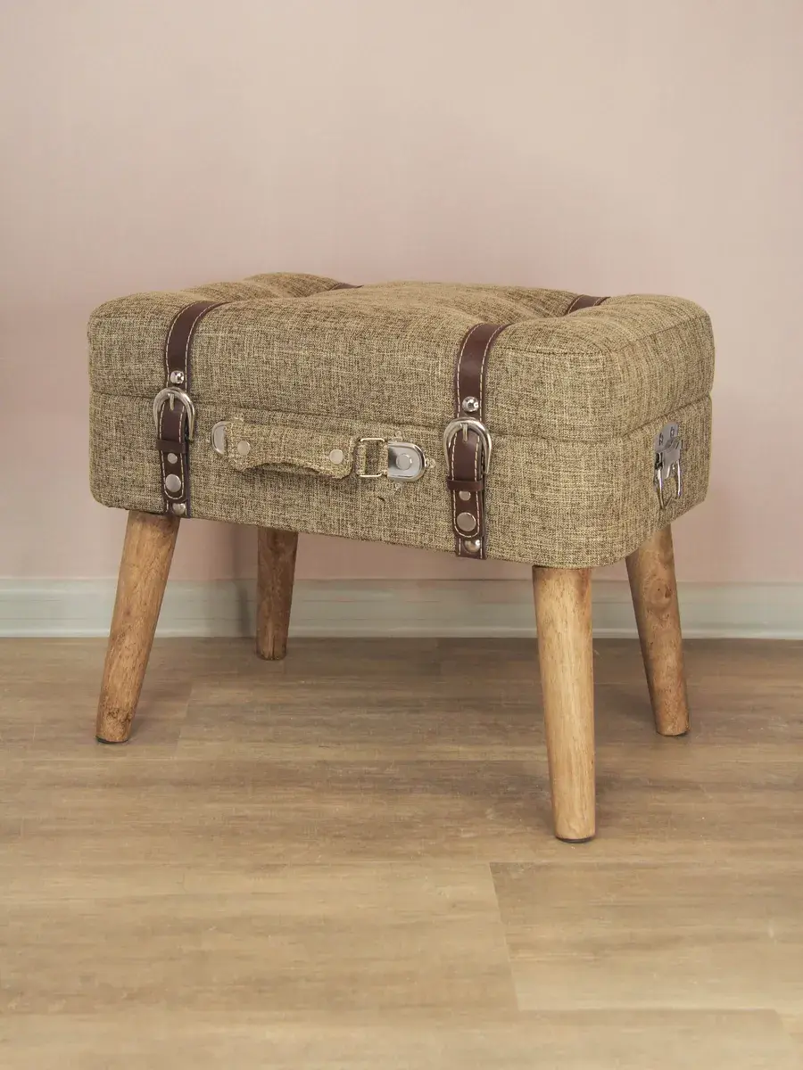 Маленький пуф-сундучок с покрытием из высококачественного текстиля добавит не только уюта вашей прихожей или гостиной, но и поможет навести порядок, избавиться от визуального мусора и найти место для тысячи нужных мелочей, благодаря пространству для хранения внутри каждого пуфика. Размер пуфика 45*30*37 см. Деревянные ножки придают пуфику элегантности, а высококачественная фурнитура и эффект состаривания превращают набор в настоящую антикварную роскошь и раритет. Ремни делают пуфик похожим на винтажный чемодан.