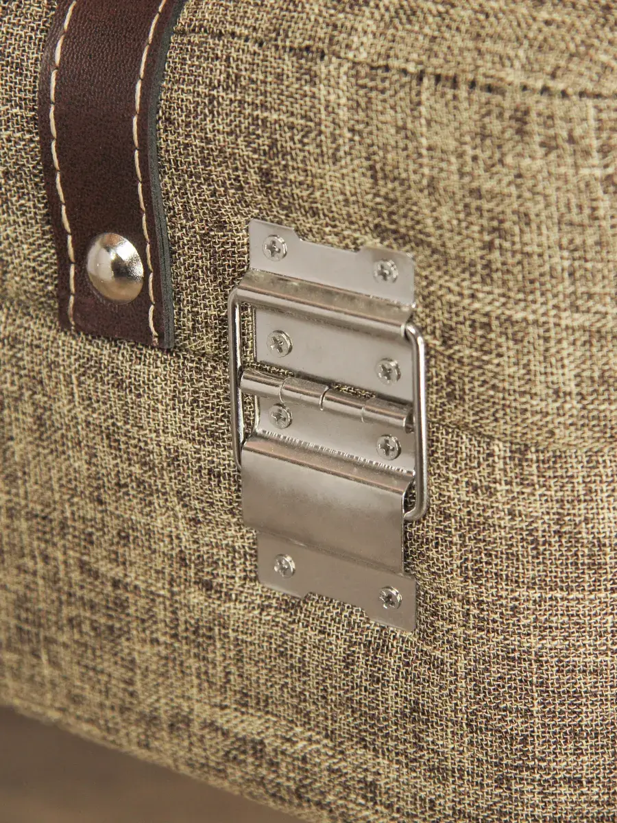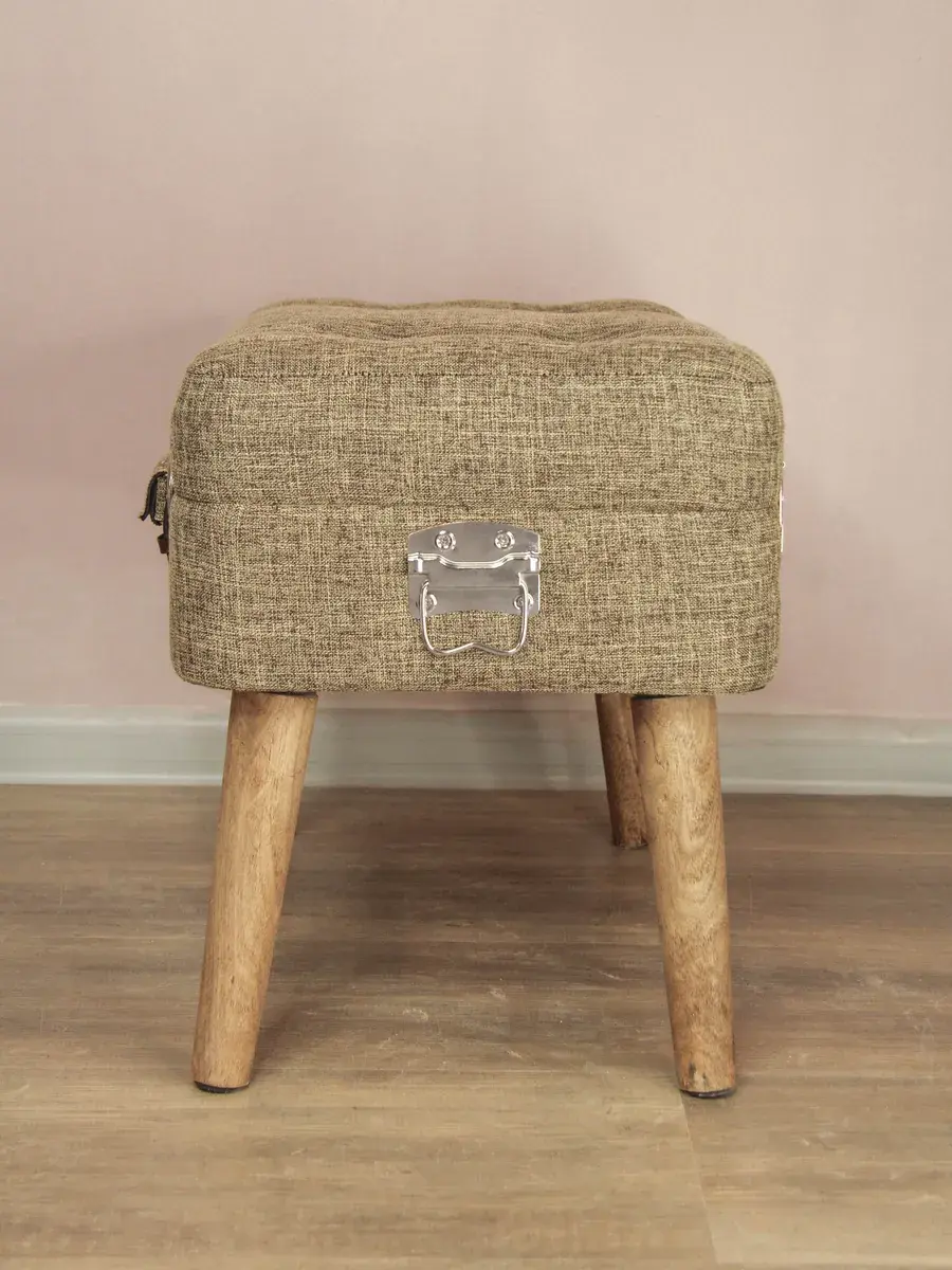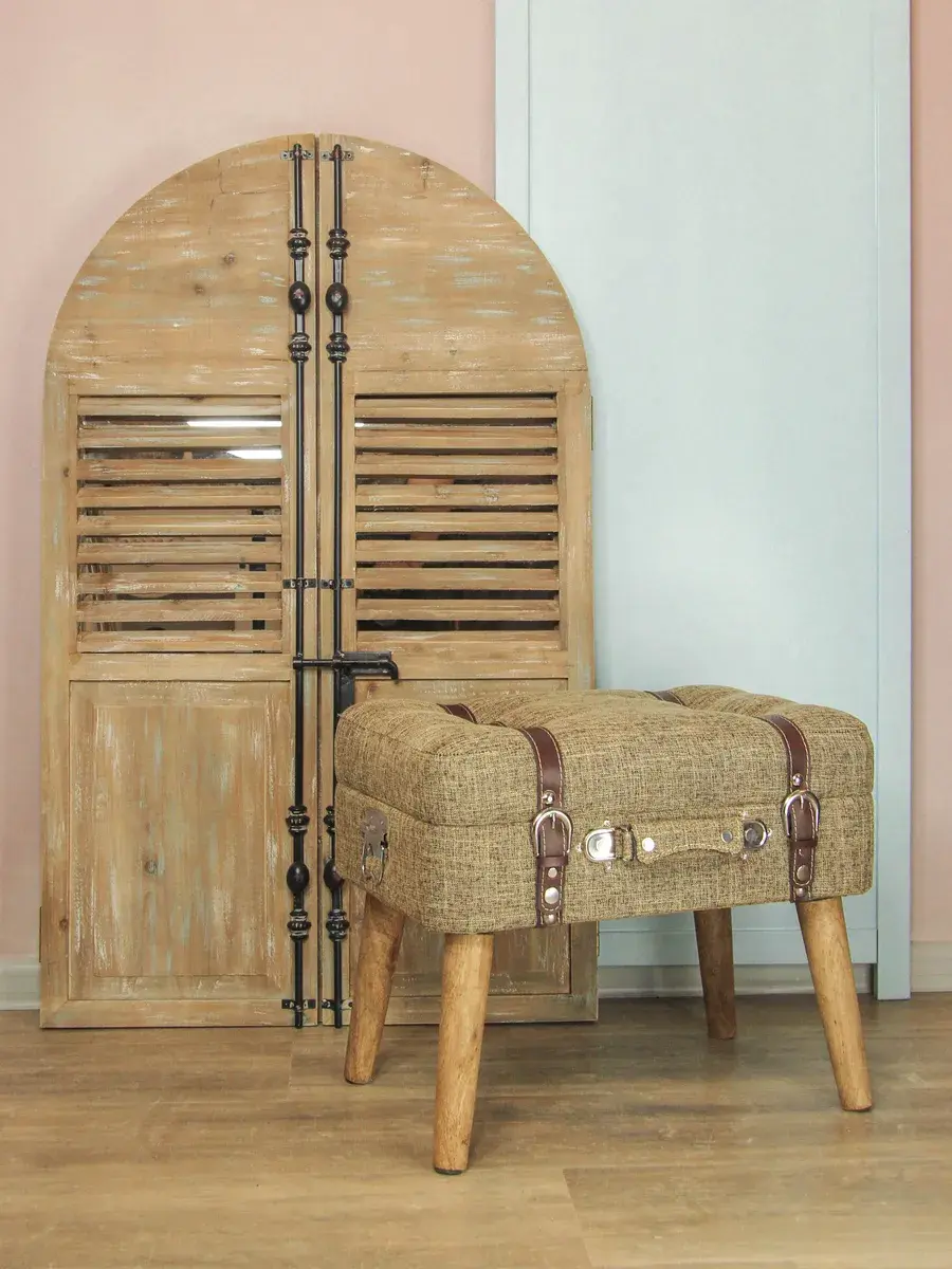 Маленький пуф-сундучок с покрытием из высококачественного текстиля добавит не только уюта вашей прихожей или гостиной, но и поможет навести порядок, избавиться от визуального мусора и найти место для тысячи нужных мелочей, благодаря пространству для хранения внутри каждого пуфика. Размер пуфика 45*30*37 см. Деревянные ножки придают пуфику элегантности, а высококачественная фурнитура и эффект состаривания превращают набор в настоящую антикварную роскошь и раритет. Ремни делают пуфик похожим на винтажный чемодан.