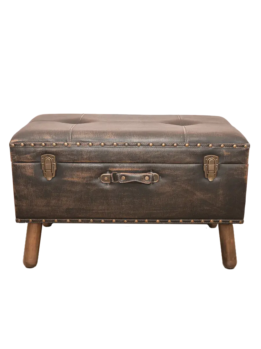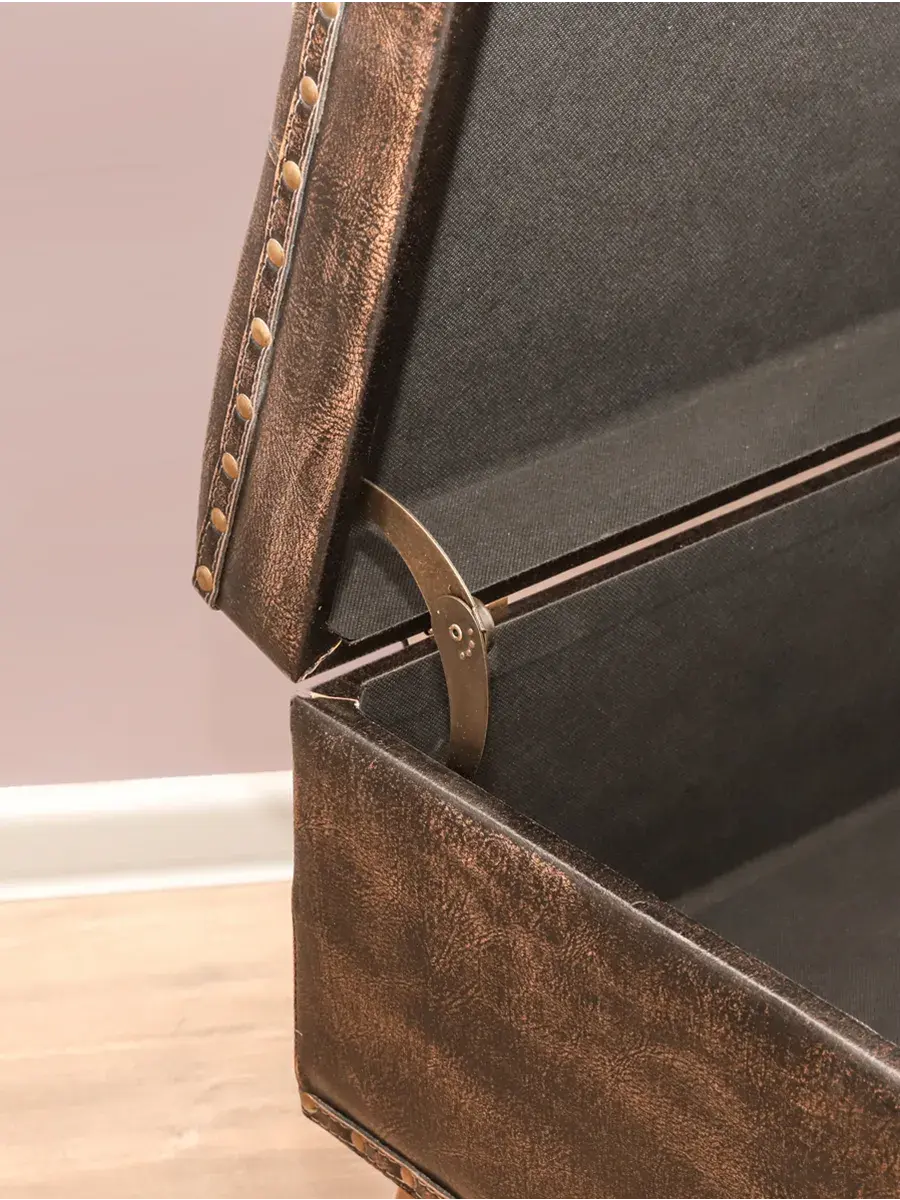 Большой пуф-сундучок (банкетка) с покрытием из высококачественной эко-кожи добавит не только уюта вашей прихожей или гостиной, но и поможет навести порядок, избавиться от визуального мусора и найти место для тысячи нужных мелочей, благодаря пространству для хранения внутри пуфика. Размер пуфика 70*39*39 см. Деревянные ножки придают пуфику элегантности, а высококачественная фурнитура и эффект состаривания превращают в настоящую антикварную роскошь и раритет.