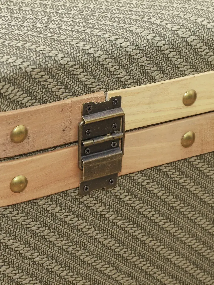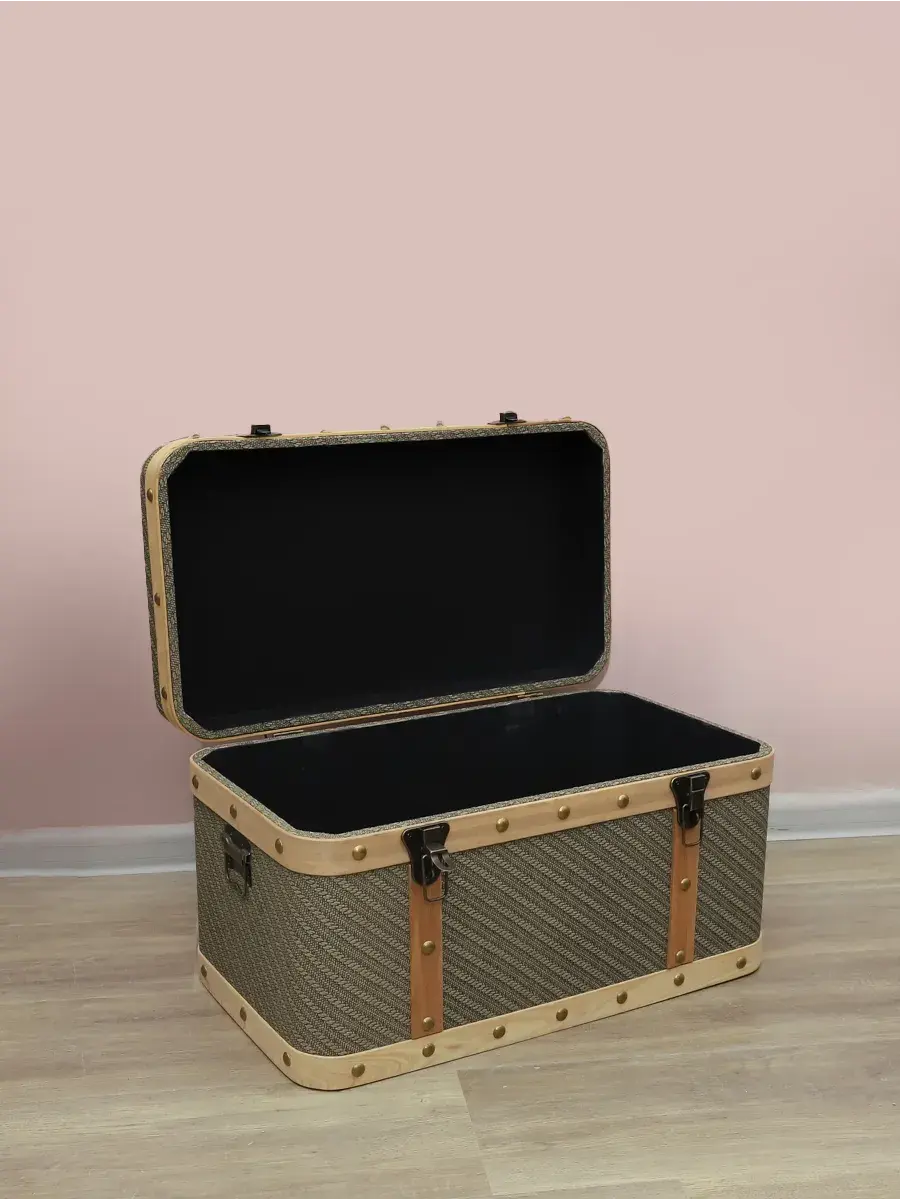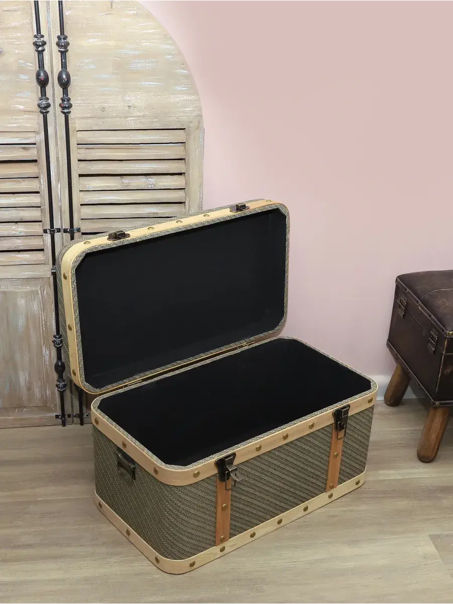 Пуфик-сундук с покрытием из высококачественного текстиля добавит не только уюта вашей прихожей или гостиной, но и поможет навести порядок, избавиться от визуального мусора и найти место для тысячи нужных мелочей, благодаря пространству для хранения внутри каждого пуфика. Размер: 54*30*31 см. Светлая окантовка и темная металлическая фурнитура придают пуфику элегантности, эффект состаривания превращает сундук в настоящую антикварную роскошь и раритет.