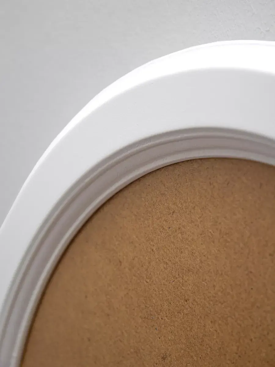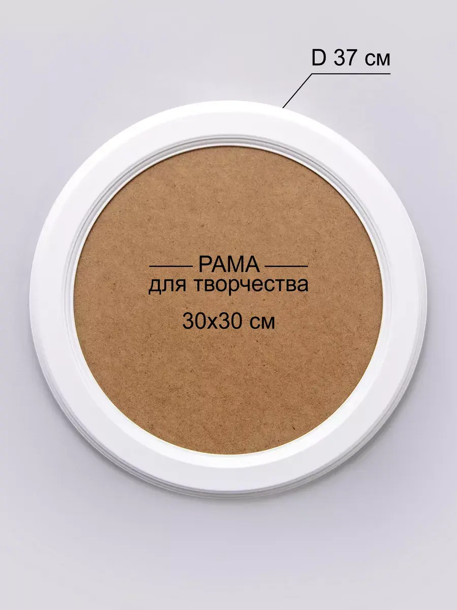 Рама цельная, без стыков и зазоров. Изготовлена из МДФ 16 мм, диаметр изображения - 29 см., диаметр с рамой 37 см., размер оргалита в четверти 30см, БЕЗ СТЕКЛА. Окрашена акриловой эмалью без запаха. Рама подойдет для фотографий, рисунков, вышивки и других видов творчества. Крепление для стены в комплекте.