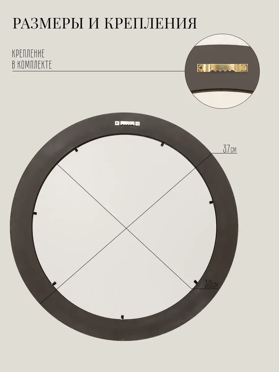 Рама цельная, без стыков и зазоров. Изготовлена из МДФ 16 мм, диаметр изображения - 29 см., диаметр с рамой 37 см., размер оргалита в четверти 30см, БЕЗ СТЕКЛА. Окрашена акриловой эмалью без запаха. Рама подойдет для фотографий, рисунков, вышивки и других видов творчества. Крепление для стены в комплекте.