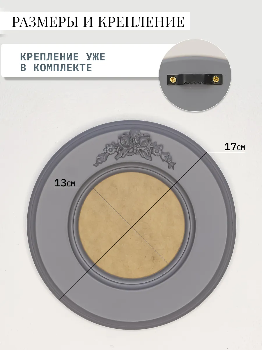 Винтажная рамка для творчества или фото. Настенная. Изготовлена МДФ 16 мм, окрашена акриловой эмалью и состарена вручную. Милая лепнина с цветочками придает раме особый изыск. Фоторамка идеально подходит для рабочего стола или стен, добавляя яркие акценты и создавая атмосферу уюта. Используйте её как аксессуар, чтобы подчеркнуть уникальность вашего пространства и каждый раз радоваться воспоминаниям. Диаметр рамы 17.5 см, диаметр фото 10 см., стекла в комплекте нет. Прекрасный подарок, небольшой сувенир в стиле прованс. Дополнение к интерьеру на полку или в коллекцию картин с птичками и цветами. Крепления в комплекте.